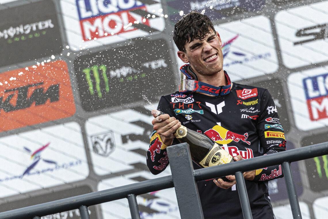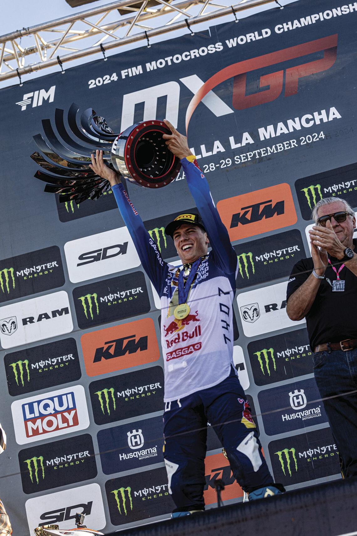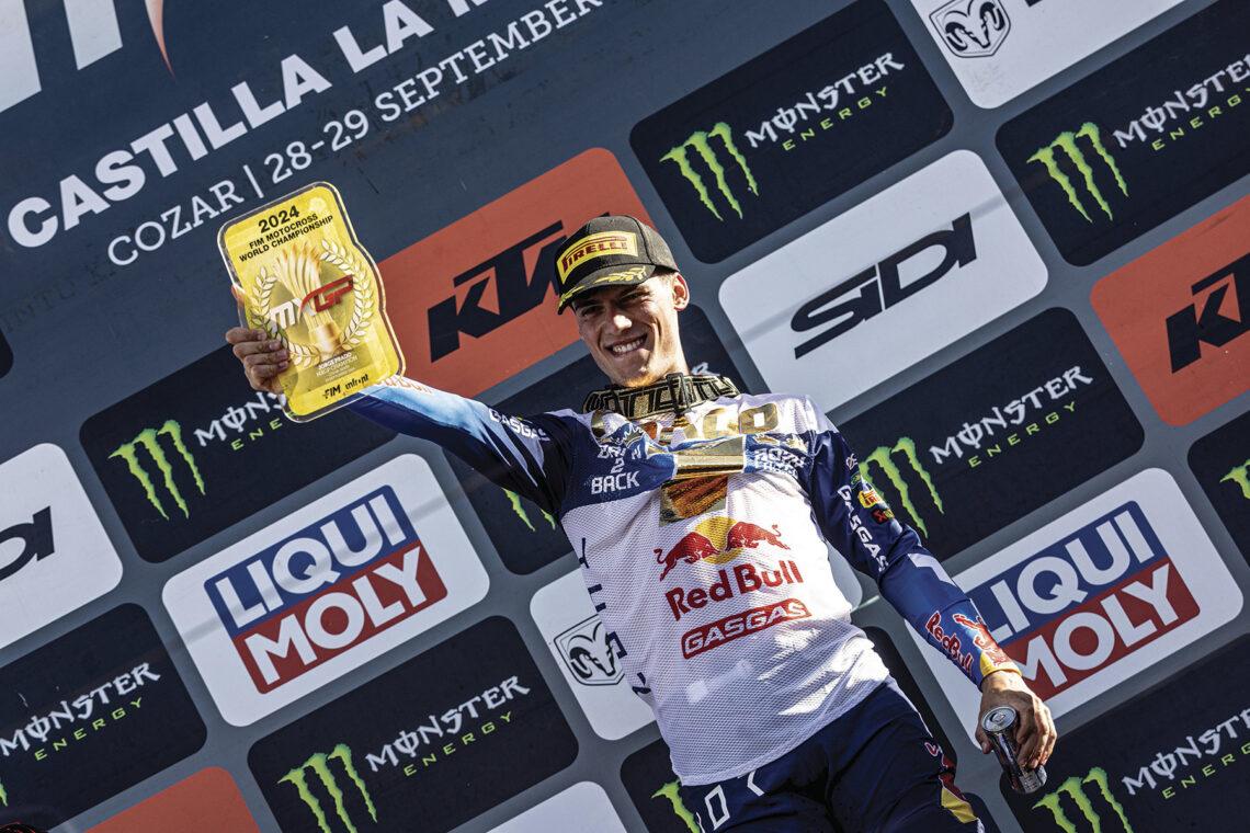 El piloto del Red Bull GASGAS se adjudicó la corona después de ganar 11 Grandes Premios de 20 posibles, imponiéndose en 16 mangas y acumulando 18 holeshots (la primera posición en la salida de la manga). Pese a esos excelentes números, la excelente temporada de Tim Gajser y Jeffrey Herlings llevó la resolución del título a la última manga del último Gran Premio, disputado en Ciudad Real, donde el lucense se coronó a lo grande: con victoria.