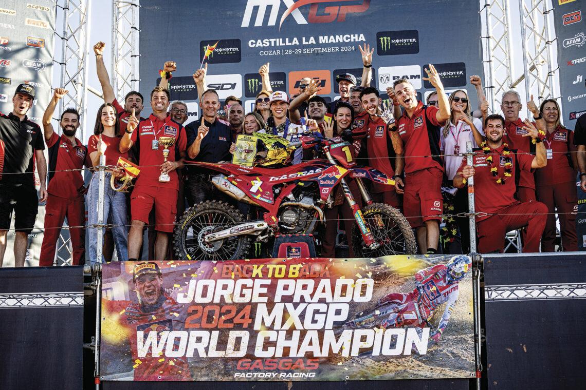 A sus 23 años, Jorge Prado sigue construyendo un palmarés de leyenda en el mundo del motocross. El pasado domingo certificó en Cózar su cuarto título mundial, el segundo consecutivo de la clase reina de MXGP tras una defensa impecable del dorsal #1 que lucía por primera vez esta temporada.
