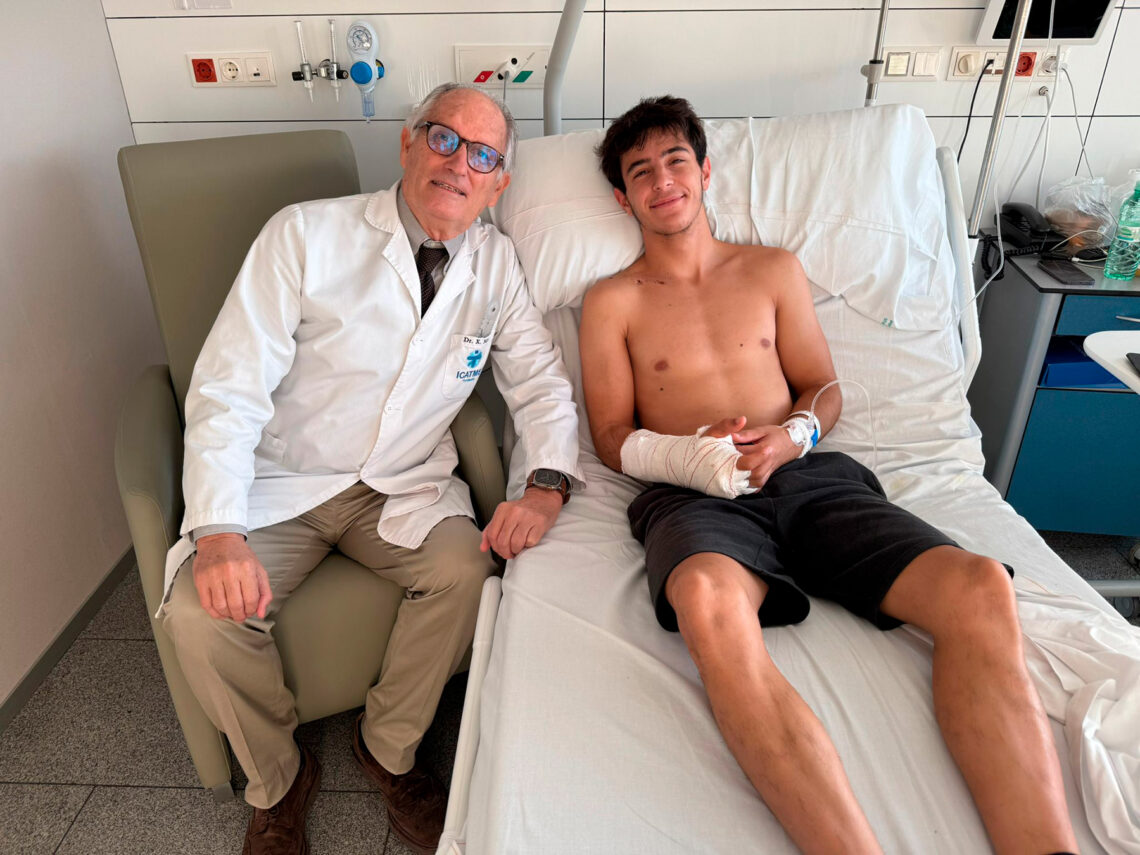 «Rueda permaneció hospitalizado bajo observación constante en el Hospital Universitario Dexeus de Barcelona, donde se decidió posponer la cirugía hasta el lunes debido a la inflamación de la mano. Afortunadamente, la operación transcurrió con éxito, y el piloto ya se encuentra recuperándose en el mismo hospital. También se está tratando una lesión en el hombro, donde una resonancia magnética reveló una pequeña fractura en la escápula. Sin embargo, no será necesaria una cirugía, y bastará con reposo para lograr una recuperación completa», actualiza el equipo.