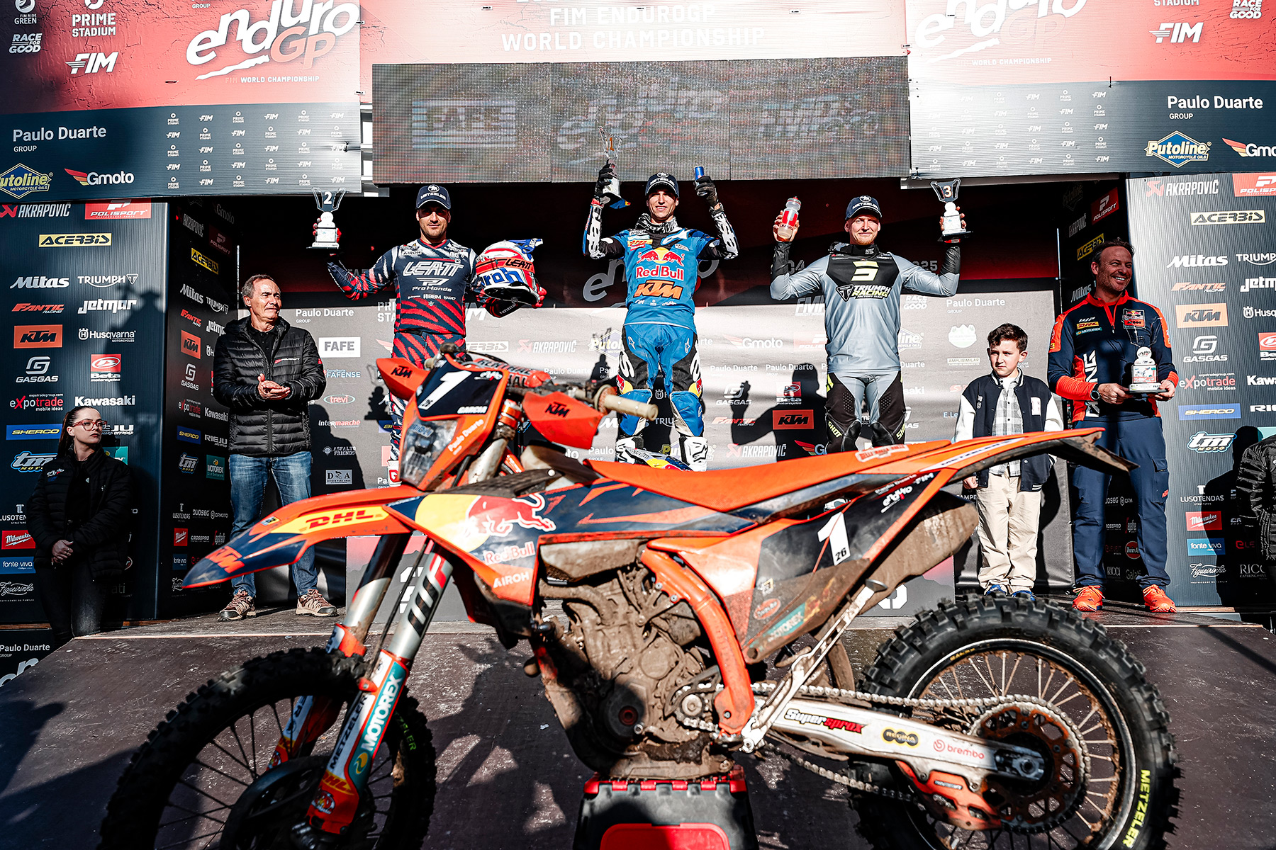 Y pese a la falta de kilómetros como consecuencia de la lesión y a que no estaba en plenitud de facultades, García selló la primera cita del Mundial, en Fafe (Portugal), con muy buena nota. De hecho, en la primera de las dos jornadas de competición subió a lo más alto del podio por partida doble: fue el ganador en EnduroGP y en su categoría de Enduro 1.