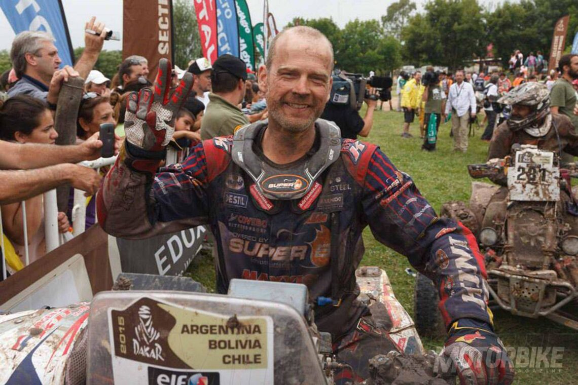 Nada más poner un nuevo asterisco en su hoja de ruta, VD Goorbergh retornó al punto de partida, las motos, aunque quiso darle una vuelta a la situación: compitió dentro de la subcategoría malle-moto, es decir, sin asistencia mecánica. Así consiguió concluir la pasada edición de 2015 en la 31ª posición, y así está dispuesto a hacerlo también este año con el objetivo de ganar en su categoría y entrar en el top 25 de la general; para ello se preparó en el Red Bull Knock Out. Sea como fuere, con volver a acabar el Dakar en estas extremas condiciones ya sería de por sí un nuevo triunfo que está dispuesto a conseguir. Ante una trayectoria dakariana tan camaleónica, sólo queda una pregunta por hacerse: ¿Le veremos algún día en un quad? Lo que parece es que a este piloto de 46 años aún le queda cuerda para rato y, aunque sea en el Dakar, es junto a Valentino Rossi y John Hopkins el único piloto que queda en activo de la primera parrilla de la historia de MotoGP. Él es Jurgen VD Goorbergh, un auténtico trotamundos.