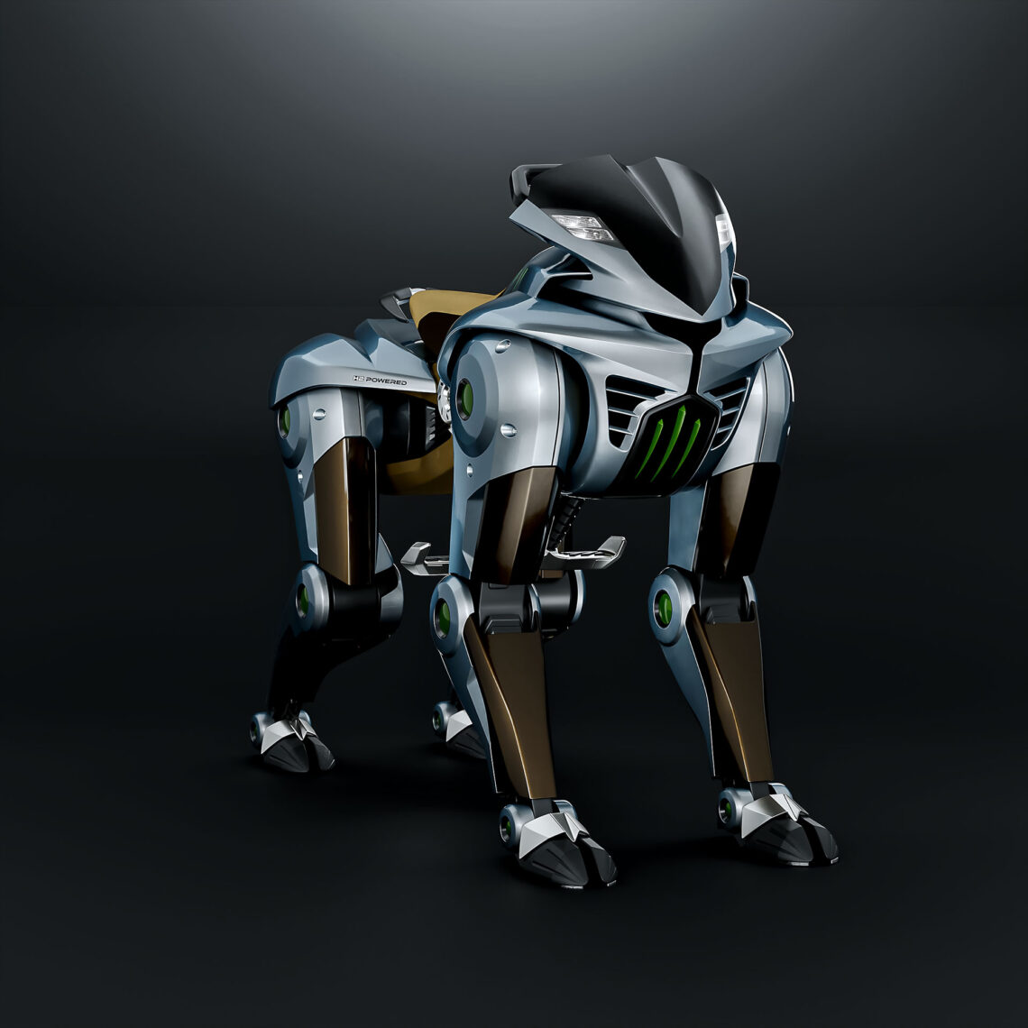 Como decíamos, el Kawasaki Corleo se inspira claramente en un felino o incluso en un caballo, ya que sus cuatro patas incorporan una especie de pezuñas fabricadas en goma que ayudan a mantener el agarre y evitar resbalones en cualquier terreno. De esta manera, puedes pensar en pisar en diferentes tipos de superficie, como zonas de pasto, roca o escombros.