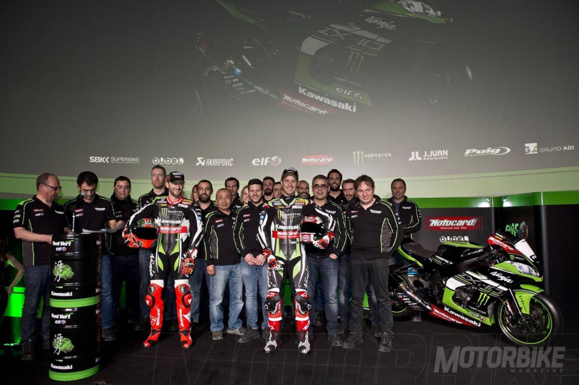 El equipo oficial Kawasaki en el mundial de Superbike deja ver a sus dos ZX-10RR vestidas con los colores que llevarán en la presente temporada 2017. El Cine Comedia en Barcelona ha sido el lugar elegido para la última de las presentaciones de los equipos oficiales de la máxima categoría de las motos derivadas de serie. Al igual que Ducati, o Yamaha, los colores y los gráficos serán idénticos a los de la pasada temporada.
