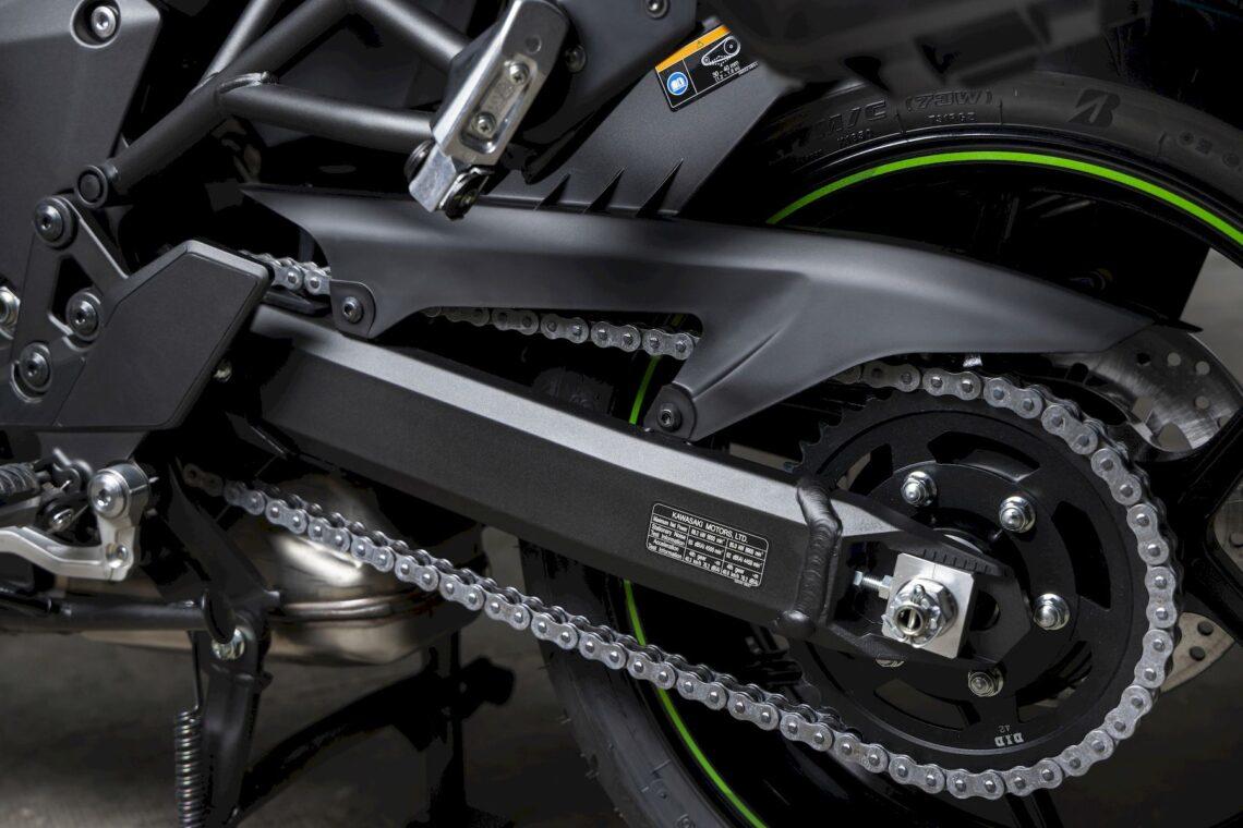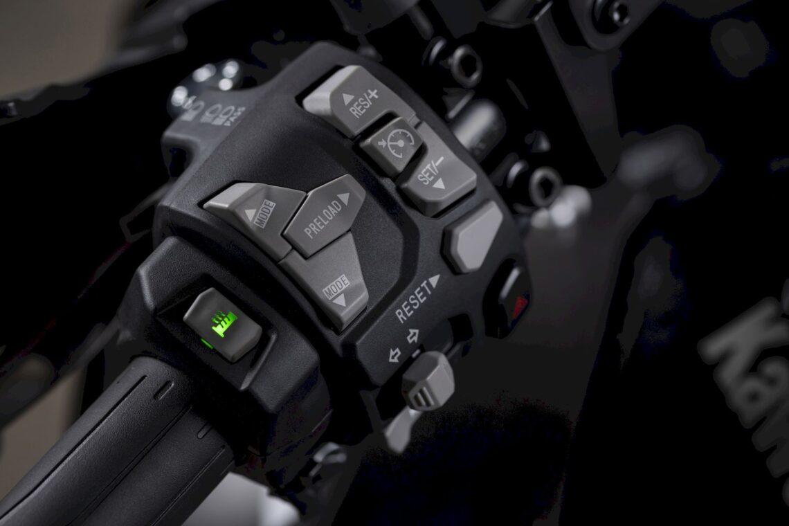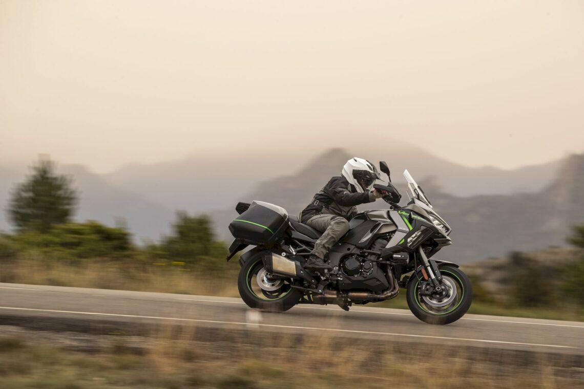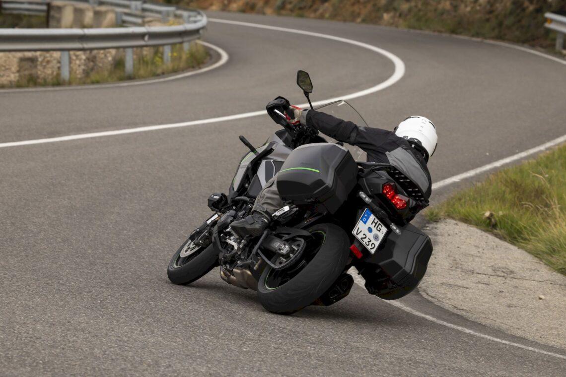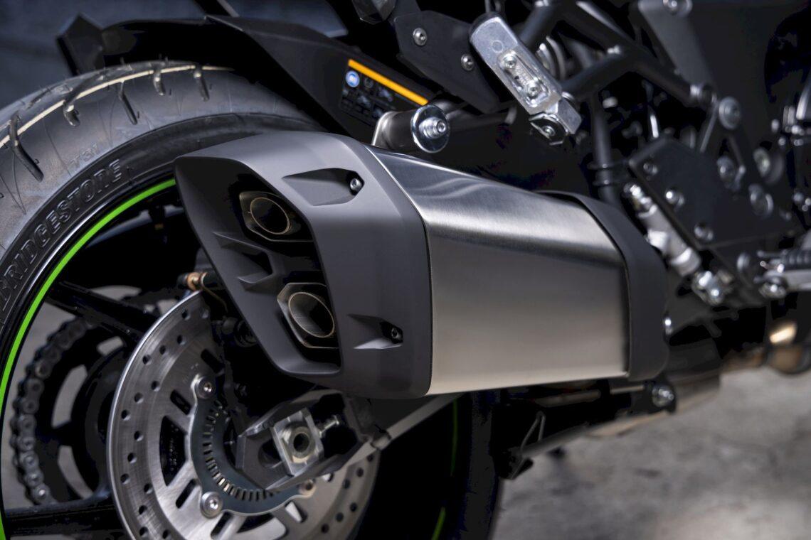 Respecto al motor, hablamos de un tetracilíndrico en línea con 1.099 cc que declara 135 CV a 9.000 rpm y 112 Nm a 7.600 rpm de par. Dispone de embrague asistido antirrebote, cambio semiautomático y un pack electrónico de última generación: acelerador RbW, 4 modos de conducción (Rain, Road, Sport, Rider), control de tracción (tres niveles), ABS, IMU Bosch, control de velocidad y conectividad smartphone por voz (App Kawasaki Rideology).