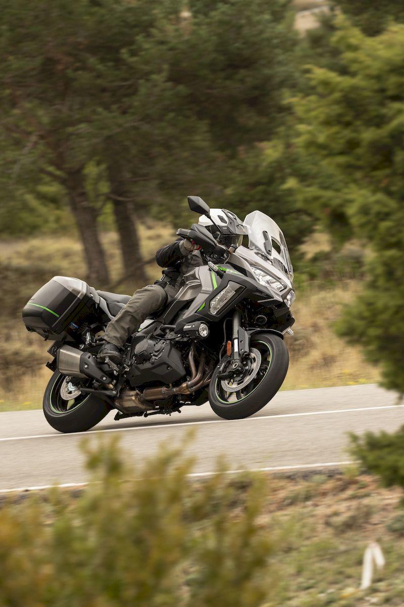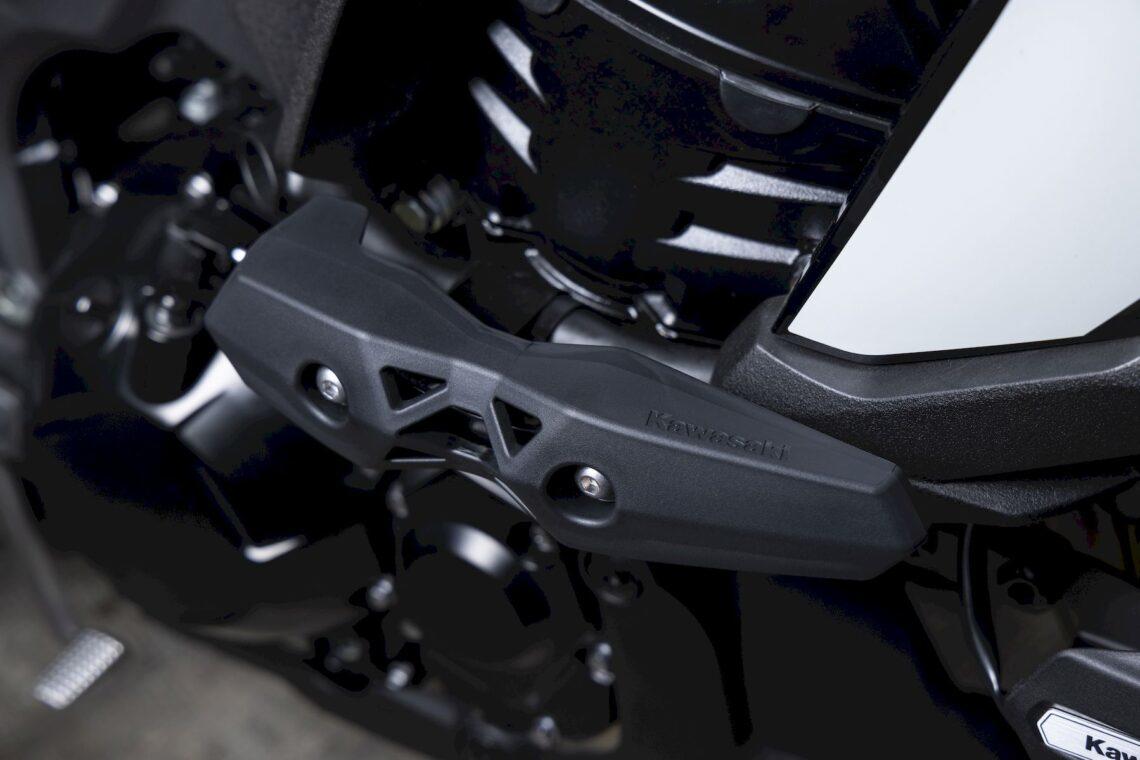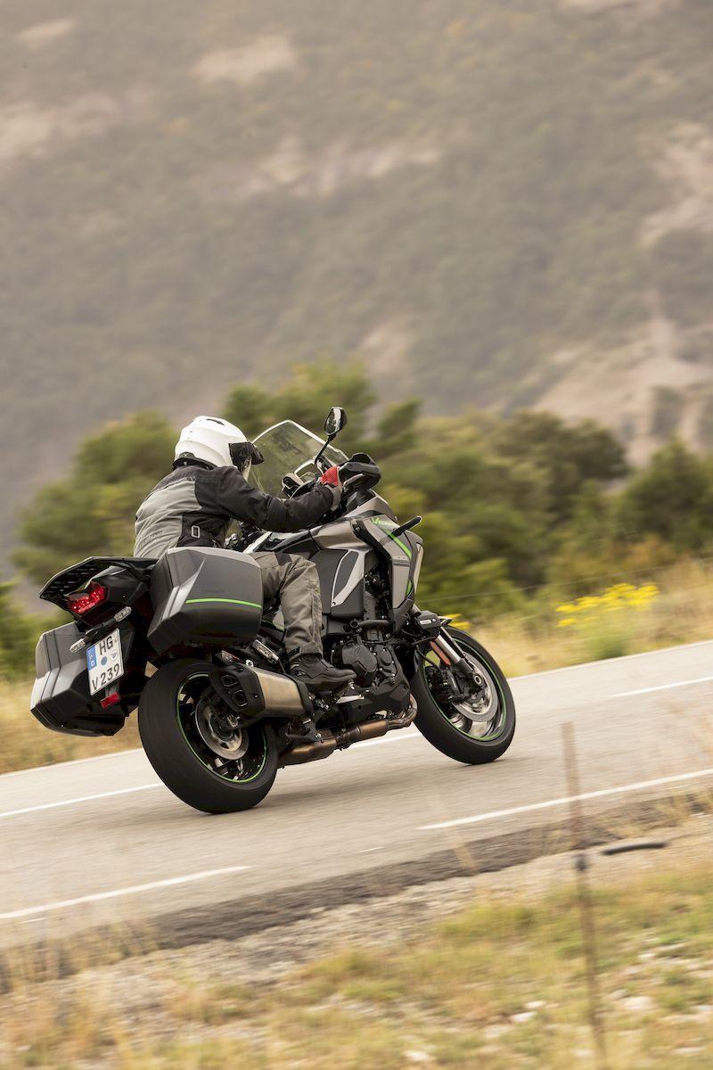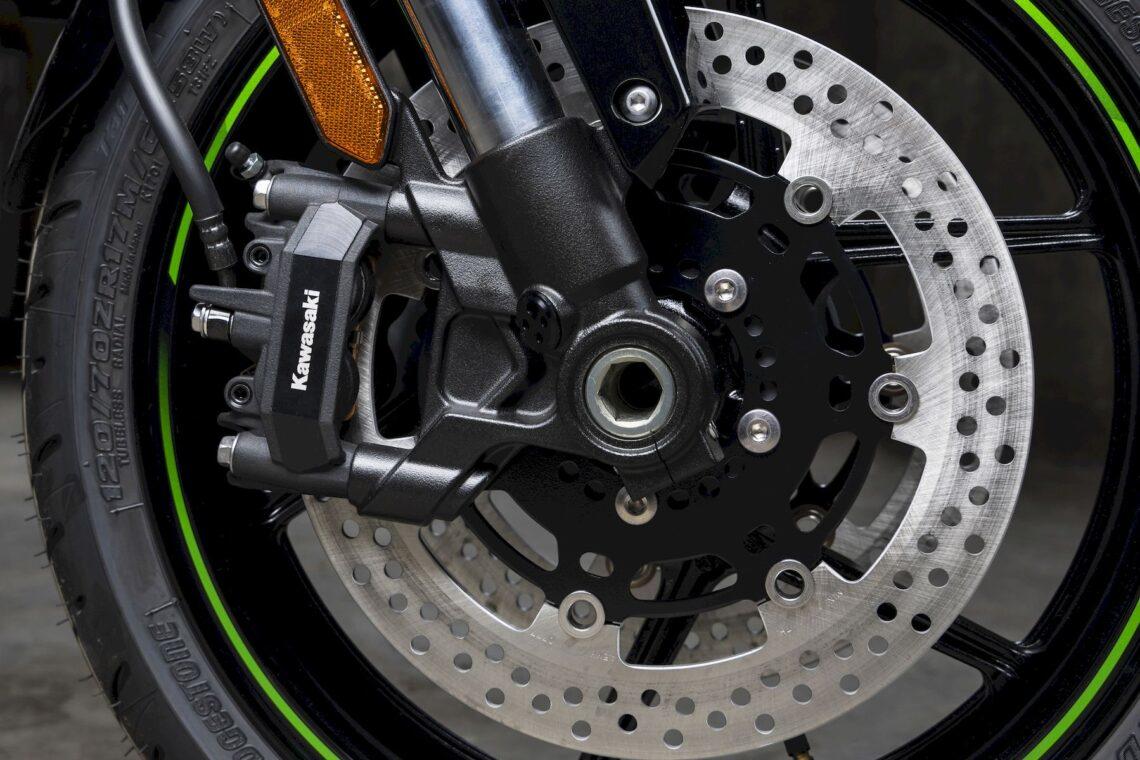 Respecto al motor, hablamos de un tetracilíndrico en línea con 1.099 cc que declara 135 CV a 9.000 rpm y 112 Nm a 7.600 rpm de par. Dispone de embrague asistido antirrebote, cambio semiautomático y un pack electrónico de última generación: acelerador RbW, 4 modos de conducción (Rain, Road, Sport, Rider), control de tracción (tres niveles), ABS, IMU Bosch, control de velocidad y conectividad smartphone por voz (App Kawasaki Rideology).