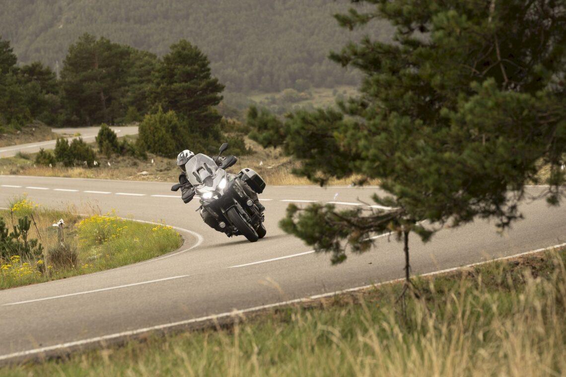 A nivel manejabilidad es lo más sorprendente, porque engaña: es increíble lo bien que entra en las curvas, lo estable que es y, sobre todo, la confianza que otorga en todo momento. Diríamos que es "una todo en uno" gracias, una vez más, a las suspensiones, ya que podemos variar de forma casi instantánea el ir con suspensiones blandas para hacer kilómetros por autovía o cambiar drásticamente esos parámetros para disponer de una moto muy divertida y efectiva en tramos de curvas reviradas. La verdad es que la llanta delantera de 17" hace maravillas.