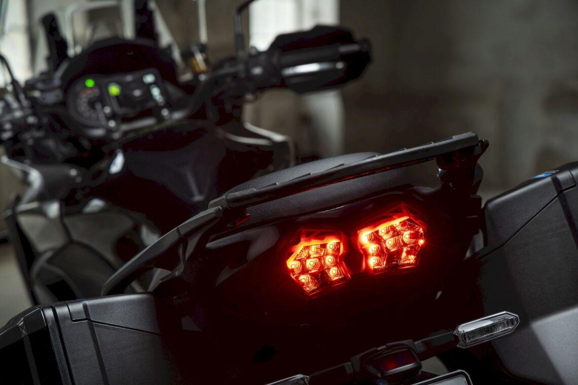La Kawasaki Versys 1100 SE centra sus principales modificaciones en el motor, además de otros detalles menores como el puerto de carga tipo USB-C o el disco de freno trasero de mayor diámetro. Parabrisas regulable, iluminación full-LED con luces cuneteras, puños calefactables o cubremanos también forman parte de su equipamiento de serie.