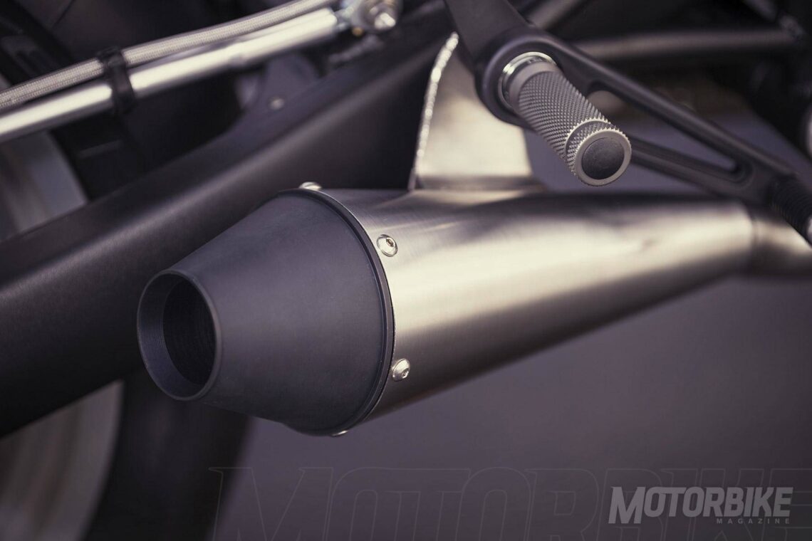 Pero el basculante no es la única pieza “made in MRS”, la artesanía con la que se ha construido esta Vulcan es de una exquisitez extrema. Tanto el guardabarros y el sistema de escape, como el conjunto de depósito-asiento –construido en una sola pieza– han sido fabricados a mano por MRS Oficina.