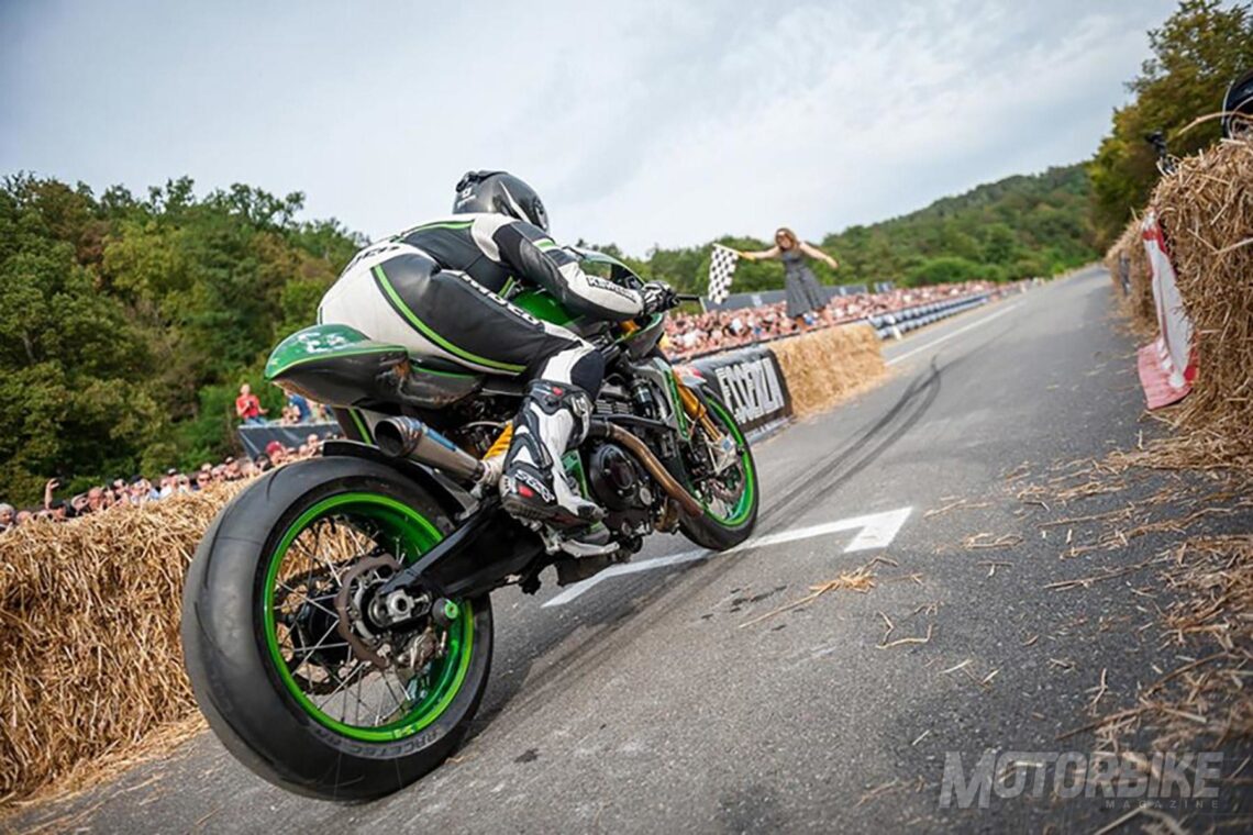 La parrilla del Glemseck Festival estaba compuesta por 16 motos que rozaban el límite de la normativa, entre las que podíamos encontrar Harley Davidsons Sportsters, BMW R9T, Triumph T120 Bonnevilles y una Ducati 1200R Monster. Pero, entre semejante parrilla, se coló una pequeña bicilindrica japonesa de 649 cc, una Kawasaki Vulcan S que escondía algún as en la manga.