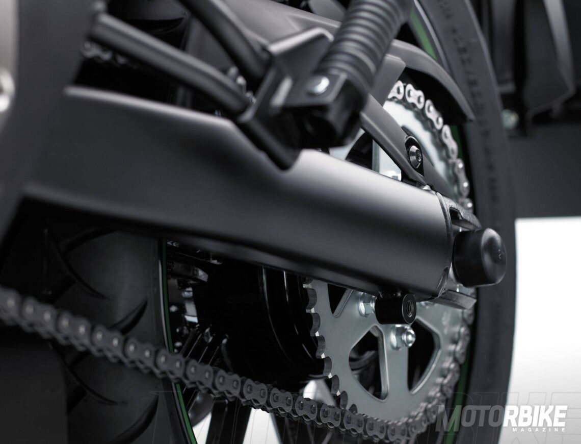 El compromiso global también se percibe en la nueva suspensión trasera, de un solo amortiguador, con el que Kawasaki busca diferenciarse de sus competidores, y también hacer un nuevo guiño a los conductores que se inician en el mundillo, ya que su anclaje ofrece un mayor recorrido, que se traduce en una conducción infinitamente cómoda.