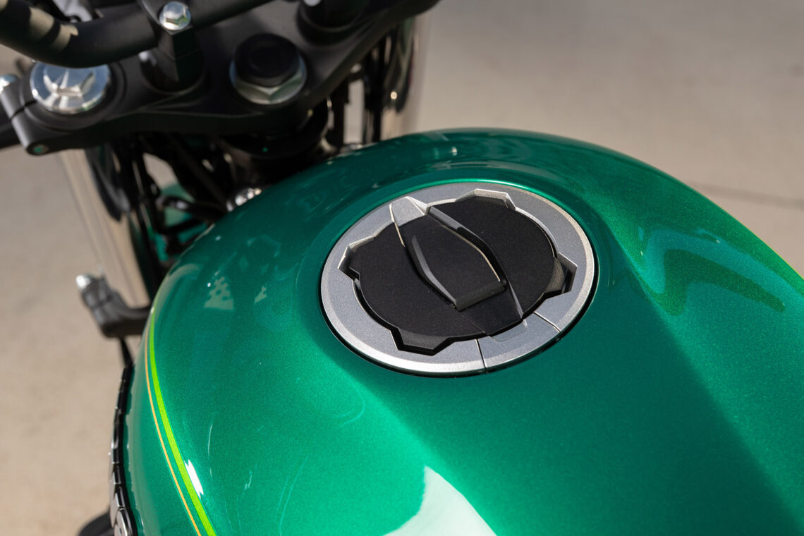 En foto es bonita, pero en cuanto estás delante de ella, automáticamente te teletransporta años atrás. Esa cola y asiento tan plano y largo, esas líneas redondas del deposito, el manillar bastante alto para disponer de buen confort de marcha y, cómo no, su faro redondo y los cuadros de instrumentos totalmente analógicos para la velocidad y revoluciones, hacen que la nueva Kawasaki Z650RS sea, a mi parecer, una de las motos más bonitas del mercado.