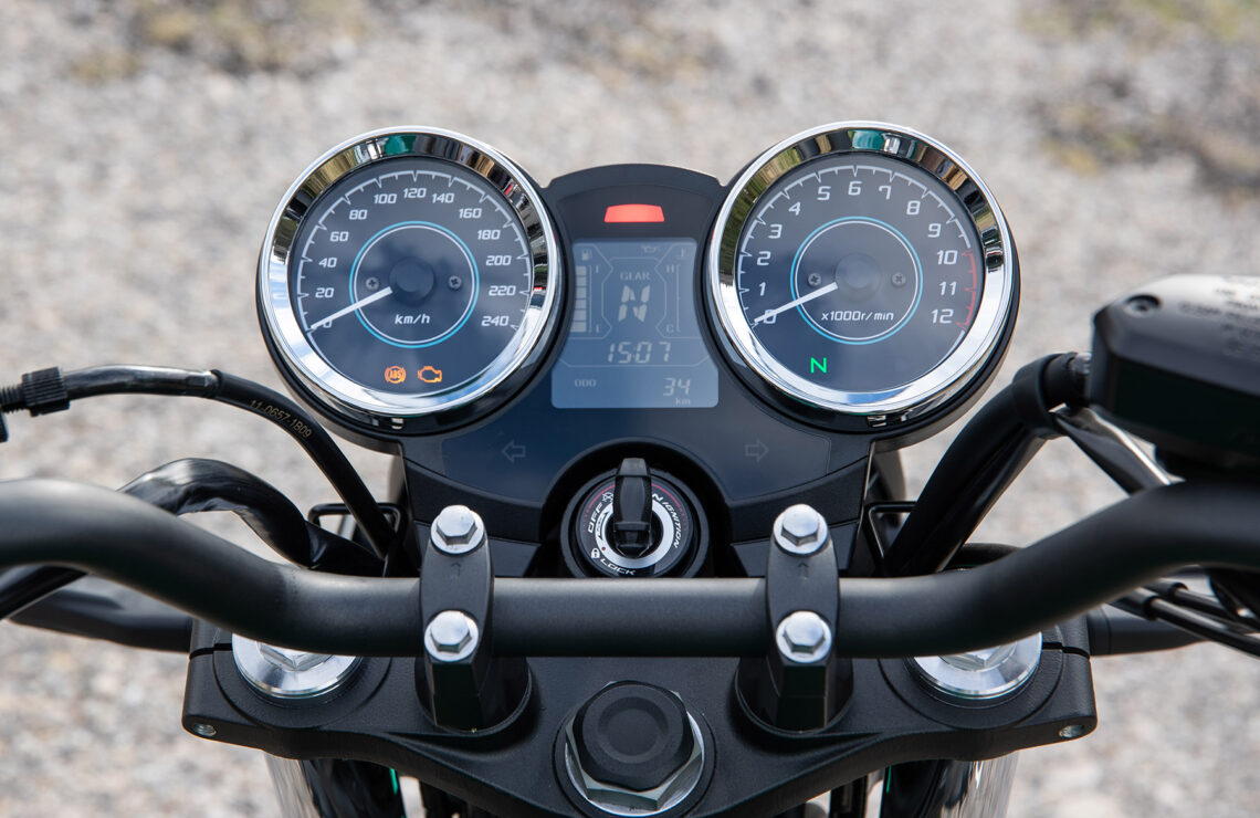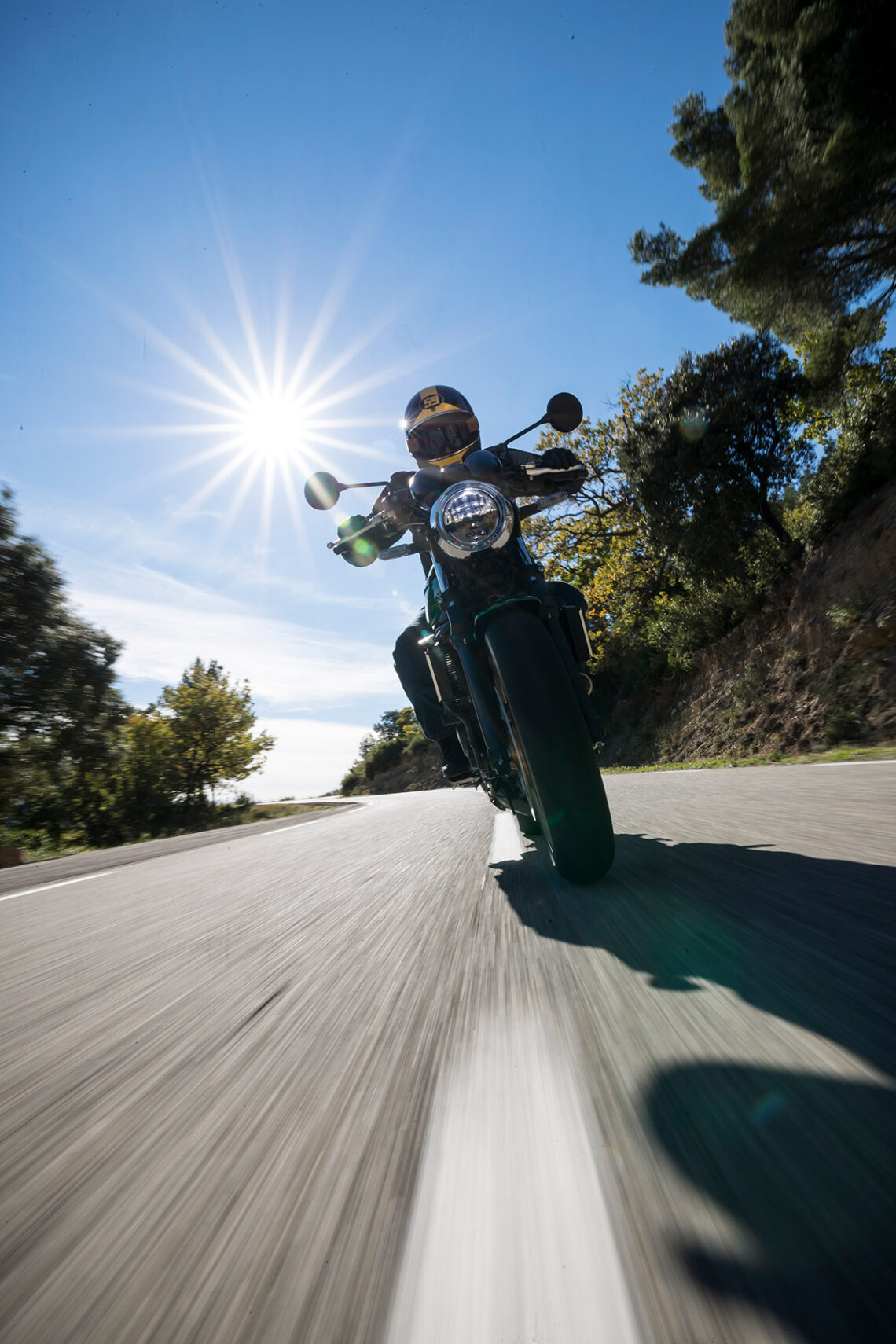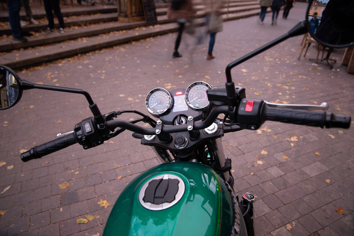 Nos subimos a ella. Por delante nos esperaba una ruta por carreteras sinuosas de Marsella con un día frío pero con buen tiempo. En cuanto estás encima de ella, te das cuenta de que el asiento de 820 mm de altura no es para nada un obstáculo para personas bajitas. Y es que al ser bastante estrecho por la parte delantera, hace que personas con una estatura de 1,69 m como es mi caso, puedan tocar con facilidad el suelo. Lo siguiente que percibes es la posición alta del manillar además de que es más bien corto y, por lo tanto, los brazos quedan en posición casi horizontal así como delante de tus hombros. Eso sumado al asiento plano y confortable, hace que la posición de conducción sea una delicia, perfecta para usar la moto todo el día sin fatiga.
