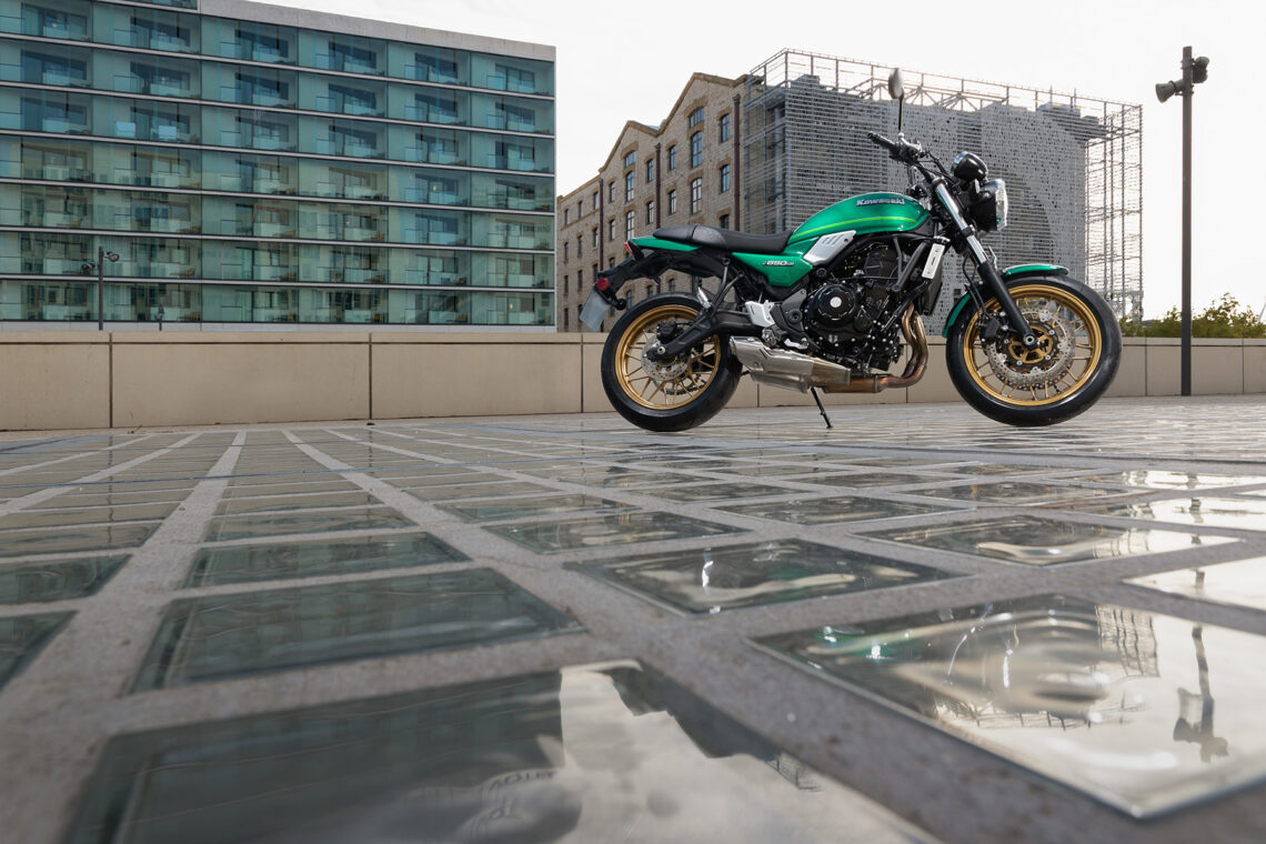 - Construida sobre la base de la Z650, pero con mucho más estilo y mayor confort gracias a un manillar más alto y un asiento totalmente plano.