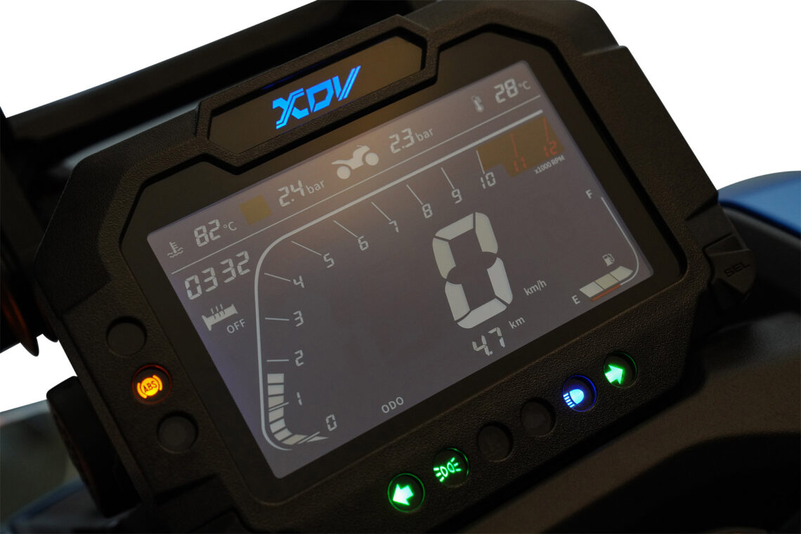 Debido a las ambiciones más altas de los modelos crossover, las marcas suelen dotar a sus modelos de componentes un poco más refinados y capaces. Es el caso de esta Keeway Vieste XDV, un modelo con unas suspensiones no sólo de mayor recorrido en ambos ejes, sino con un salto de calidad. Para ello ha contado con la colaboración de un fabricante de renombre como es KYB, que aporta una horquilla invertida en el tren delantero (telescópica convencional en el modelo estándar) y con un doble amortiguador trasero con depósito de gas separado y ajustable en precarga. En la frenada también se decanta por JJuan para ofrecer una potencia de detención que esté a la altura mientras que en su equipamiento no faltan las luces LED, la llave inteligente, la pantalla de instrumentación TFT a color, los mandos retroiluminados, los puños calefactables, la cúpula regulable en altura manualmente y sin herramientas, toma de mechero de 12V, toma USB en la guantera y sensores de presión de neumáticos.