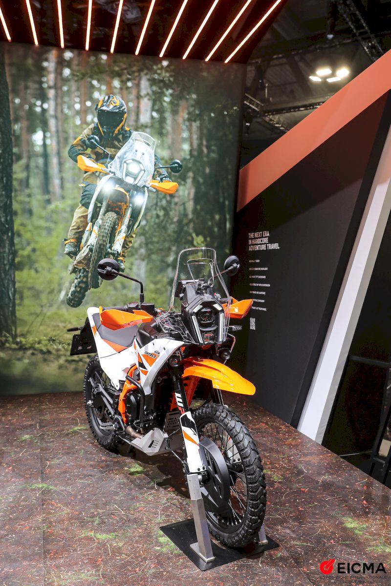 El depósito de gasolina de la actual Adventure SW alberga 14,5 litros y el peso del conjunto se mantiene en 159 kg en seco, por lo que la R podría variar levemente al alza debido al equipamiento y al empleo de las llantas de radios (neumáticos con cámara). Más recorrido de suspensión, equipo completo WP de nueva factura, asiento biplaza monopieza sin asideros, cubrecárter de aluminio, monodisco de freno delantero en el lado derecho (actualmente a la izda.), carrocería de estética dakariana y óptica frontal tipo 990 Duke R también potencian su deportividad. Curiosamente, la moto mostrada en el stand KTM del EICMA 2024 carecía de silenciador por el lateral derecho.
