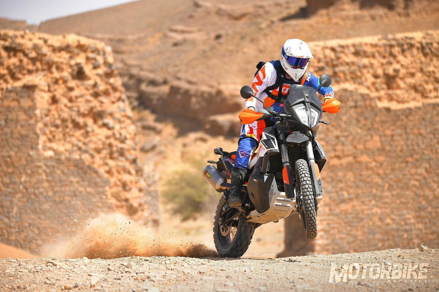 Pero, es cierto, lo que nos 'pone' de este tipo de motos trail es su vertiente más off-road. Sin duda alguna, la versión KTM 790 Adventure R se convierte en una referencia para los aficionados con un criterio más endurero. Dispone de suspensiones regulables de mayor recorrido (que hace crecer su asiento hasta los 880 mm), una pantalla más pequeña y un asiento diferente más plano. Si además le añades unos Continental TKC 80 o similares como 'zapatos' (como tuvimos en Marruecos), ya tenemos un juguete para 'hacer el animal' por cualquier terrenos que se nos ponga por delante.