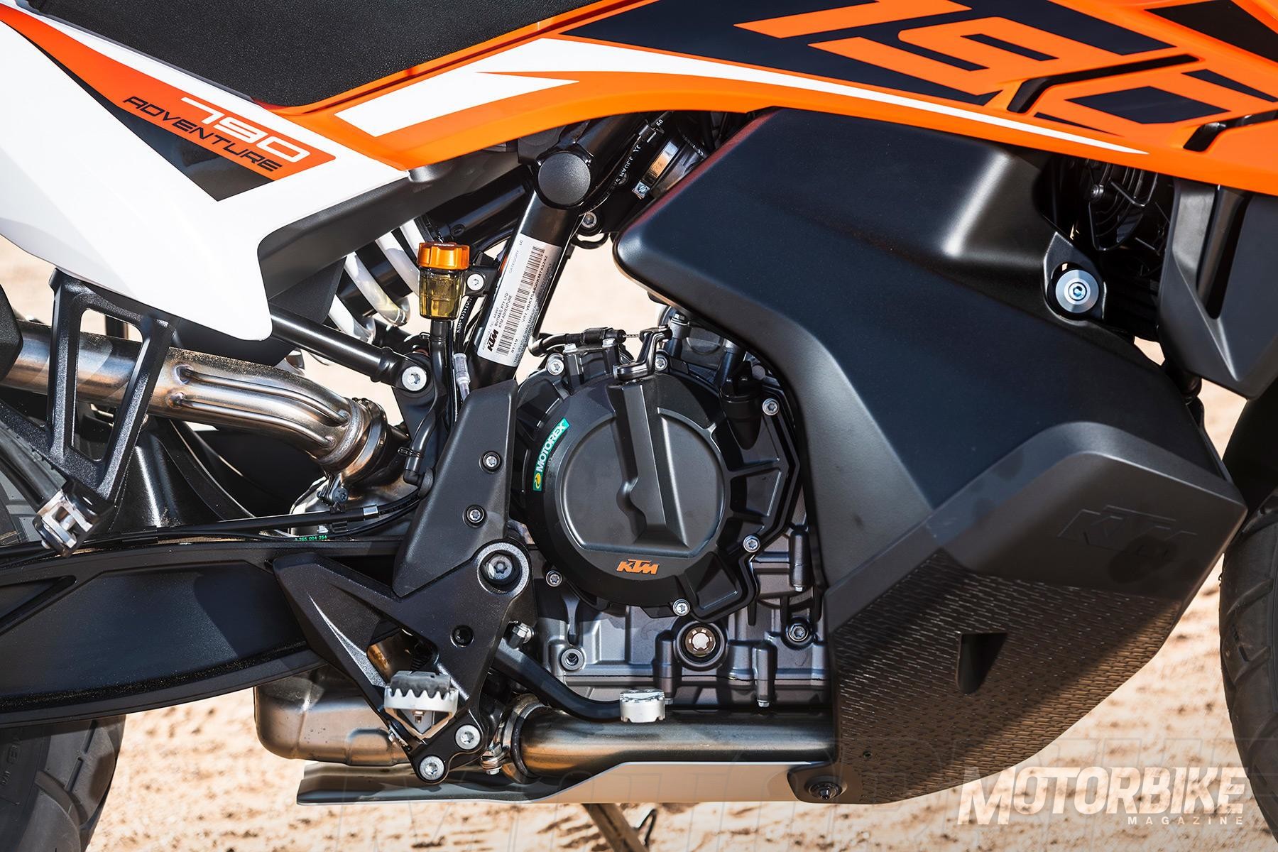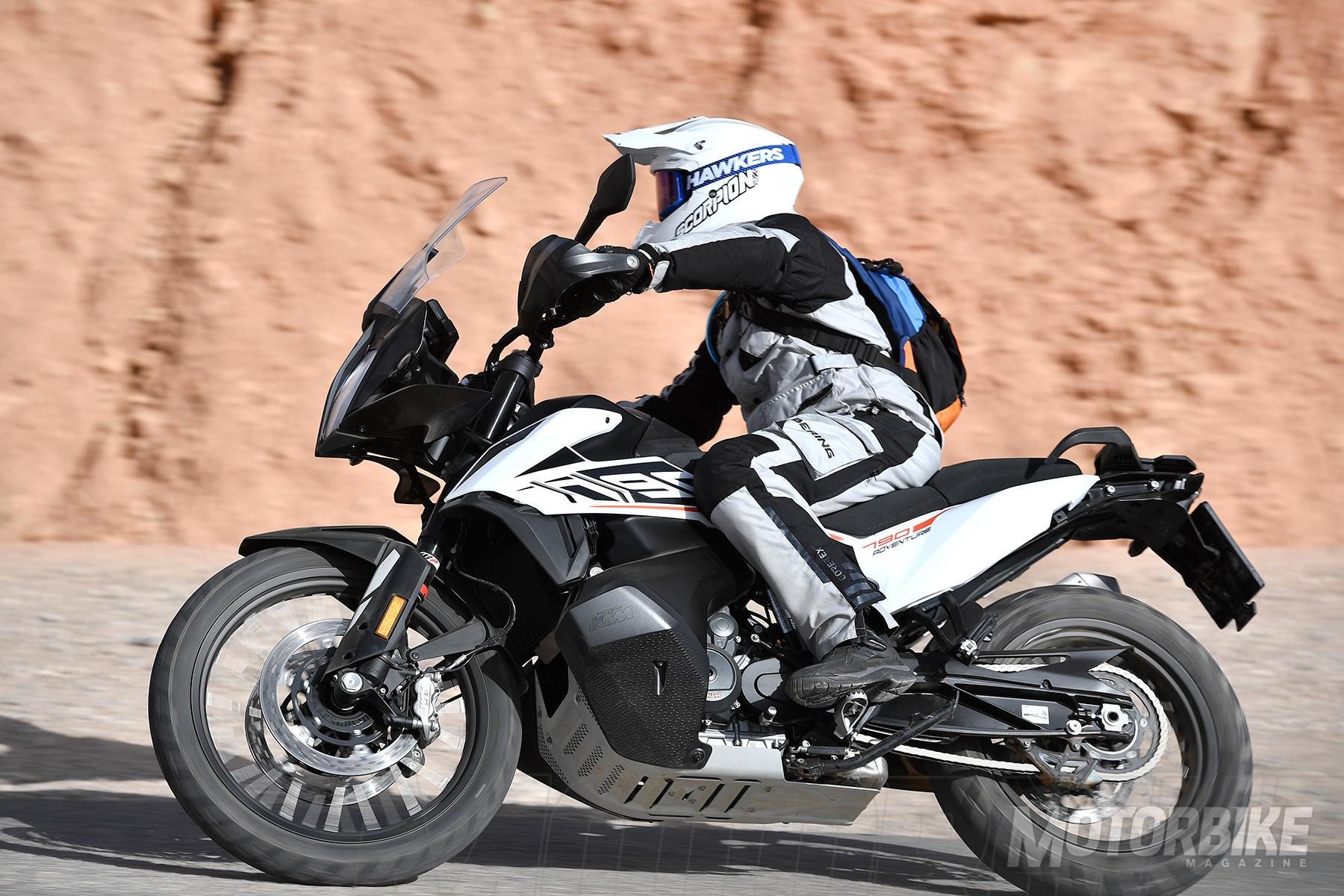 Siguiendo en esta línea, esos 95 cv de potencia de la KTM 790 Adventure / R pueden parecer un poco pobres si los comparamos con los 125 cv de la KTM 1090 Adventure y 1090 Adventure R o los brutales 160 cv de la KTM 1290 Super Adventure y Super Adventure R. Obviamente, este motor puede rendir bastante más. No en vano, en la KTM 790 Duke estira hasta los 105 cv. Sin embargo, además de convertirla en compatible con el carnet A2, lo que estos 70 kW de potencia de la Adventure permiten es que sea una moto muy dócil y manejable. Con esa potencia hay más que de sobra para poder sobrepasar los límites legales de velocidad en asfalto y gracias a su estudiada curva de potencia y par motor, las recuperaciones hacen que dar gas sea una aceleración vista y no vista. Y, por otro lado, es mucho más aprovechable en el off-road, donde la tracción es una de las claves para el mejor rendimiento de una moto campera.