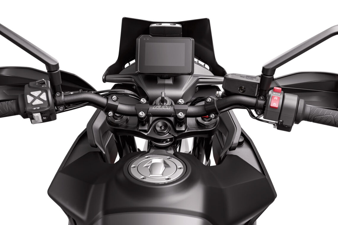 Como extras o accesorios KTM Powerparts encontraremos varias cúpulas más altas, puños calefactables, regulación del freno motor, cambio semi-automático Quickshifter+, y control de crucero.