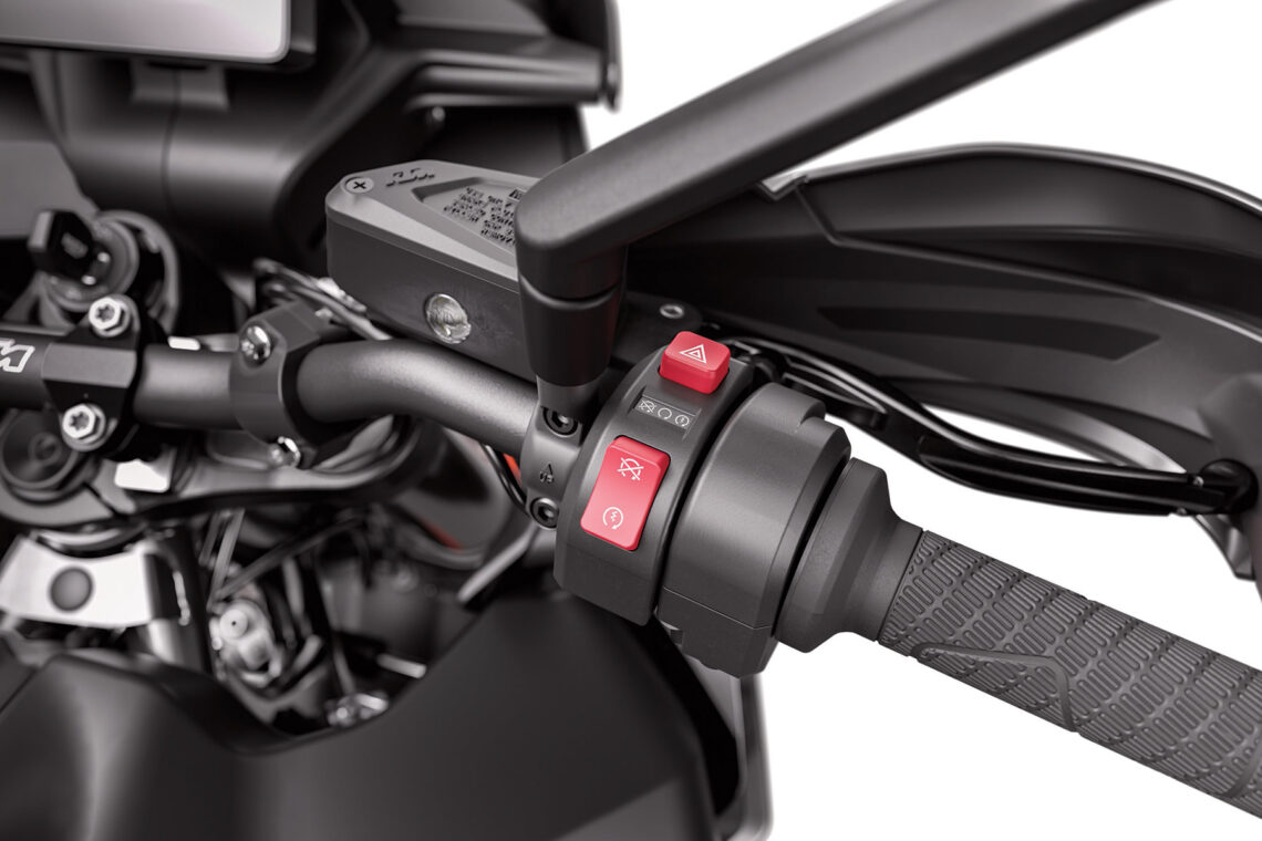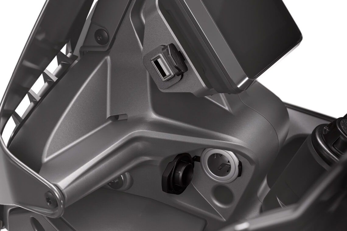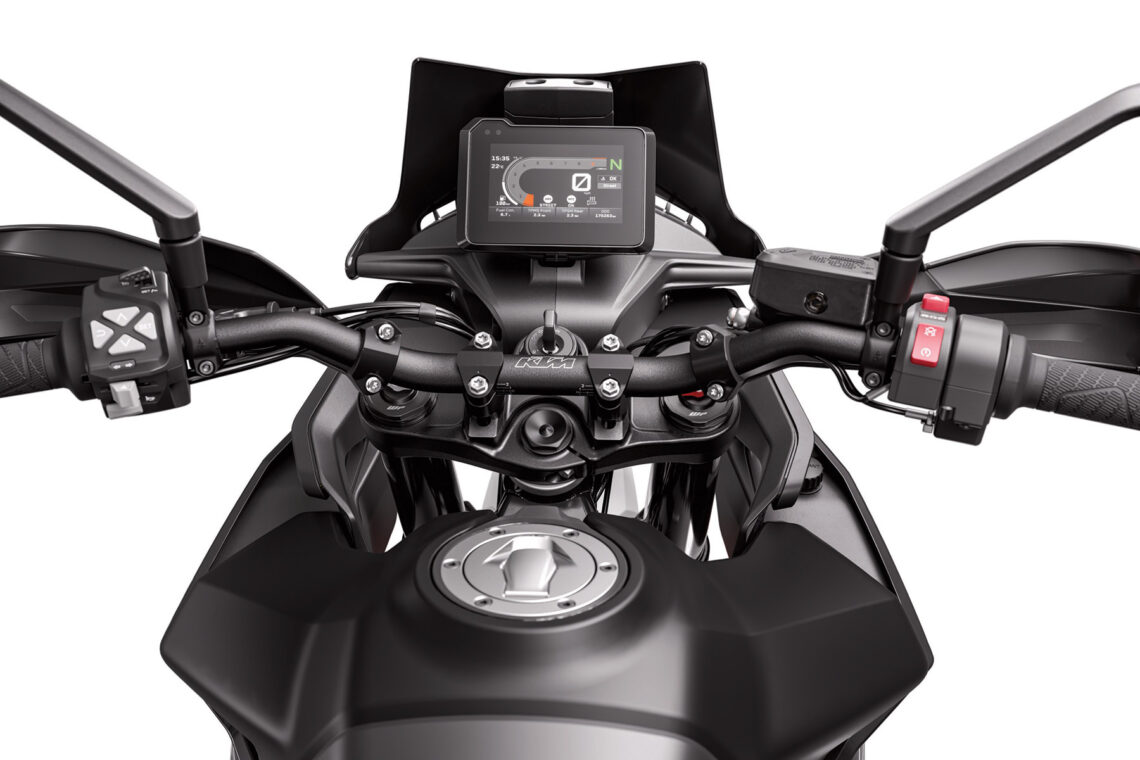 En lo tecnológico encontramos una instrumentación TFT de 5" con un diseño de interfaz exclusivo para este modelo. Cuenta con un paquete electrónico con tres modos de conducción (RAIN, STREET, SPORT) más un cuarto modo personalizable TRACK. Control de tracción desconectable y sensible a los diferentes ejes de cabeceo, inclinación y guiñada gracias a su plataforma de medición inercial IMU de 6 ejes. Gracias a ello también encontramos ABS en curva y un ABS supermoto que permite desconectar el ABS trasero y realizar invertidos.