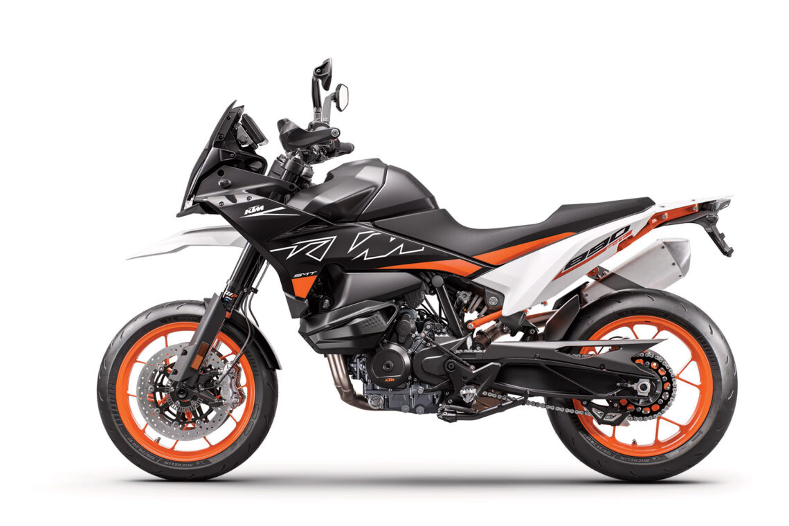 Realmente la KTM 890 SMT no deja de ser una pseudo-trail asfáltica, reforzando en esto último, ya que lo que comanda aquí es esa llanta delantera de 17 pulgadas, definiendo en gran medida su enfoque y escenario de uso. La KTM 890 Adventure es la moto hermana de quien hereda chasis y motor, pero con llanta de 19" y aptitudes off-road.