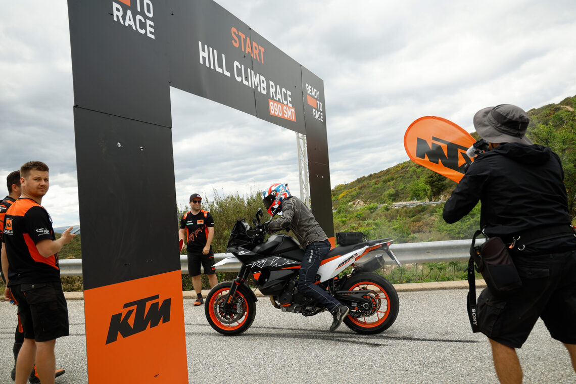 Total, llega el momento, y tras una puesta en escena espectacular y una estética muy llamativa, me subo a ella, arranco y me voy encontrando, poquito a poco, con una moto mucho más cercana y empática de lo que esperaba. Meto primera, salgo, y ya solo durante los 2 ó 3 kilómetros de zona urbana para salir del hotel donde estábamos me voy dando cuenta que la 890 SMT es super agradable de llevar, que tiene muy bien ajustado el acelerador, la transición cerrar y abrir gas, que no pega "collejones" ni coces molestas... ¡Joder que es, no solo llevable, sino disfrutable hasta por ciudad! algo que no suele ser habitual en motos KTM de carretera de alta cilindrada...