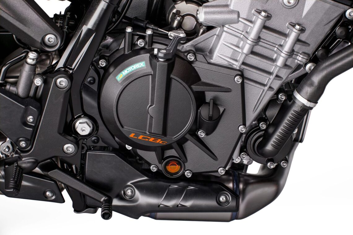 Por otro lado encontramos un motor que si bien no es nuevo, difiere bastante, con un importante aumento de cilindrada (de 889 a 947 cc) así como un aumento de potencia (de 115 a 123 cv). La nueva definición de LC8 "c" viene de compacto, ya que mantiene el mismo tamaño exterior de la 890 Duke pero con un aumento de las cotas internas de diámetro x carrera, lo que propicia el citado aumento de cilindrada.