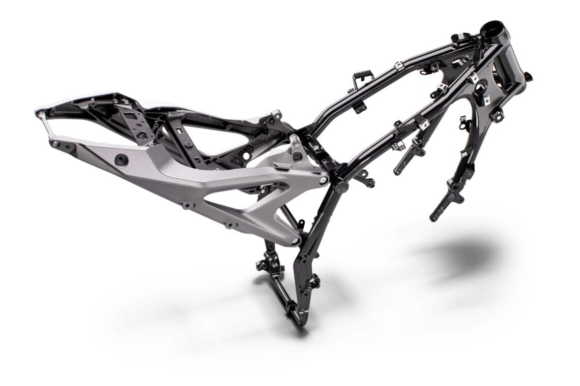 El 96% nueva en esta KTM 990 Duke viene principalmente, porque el chasis es de nueva confección, con un diseño que se mantiene fiel al concepto tubular, así como subchasis y un basculante fundido por gravedad, menos rígido que el de la KTM 890 Duke. Esto junto a la nueva carrocería, totalmente rompedora, con un nuevo depósito de combustible (14,8 L) de metal y un nuevo grupo óptico delantero, nos deja la cifra de peso máximo en seco de 179 kg, y una altura del asiento al suelo de 825 mm.