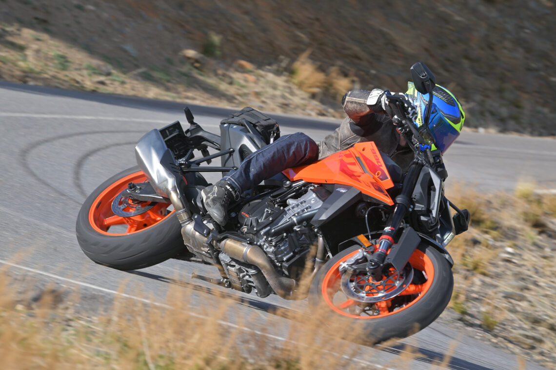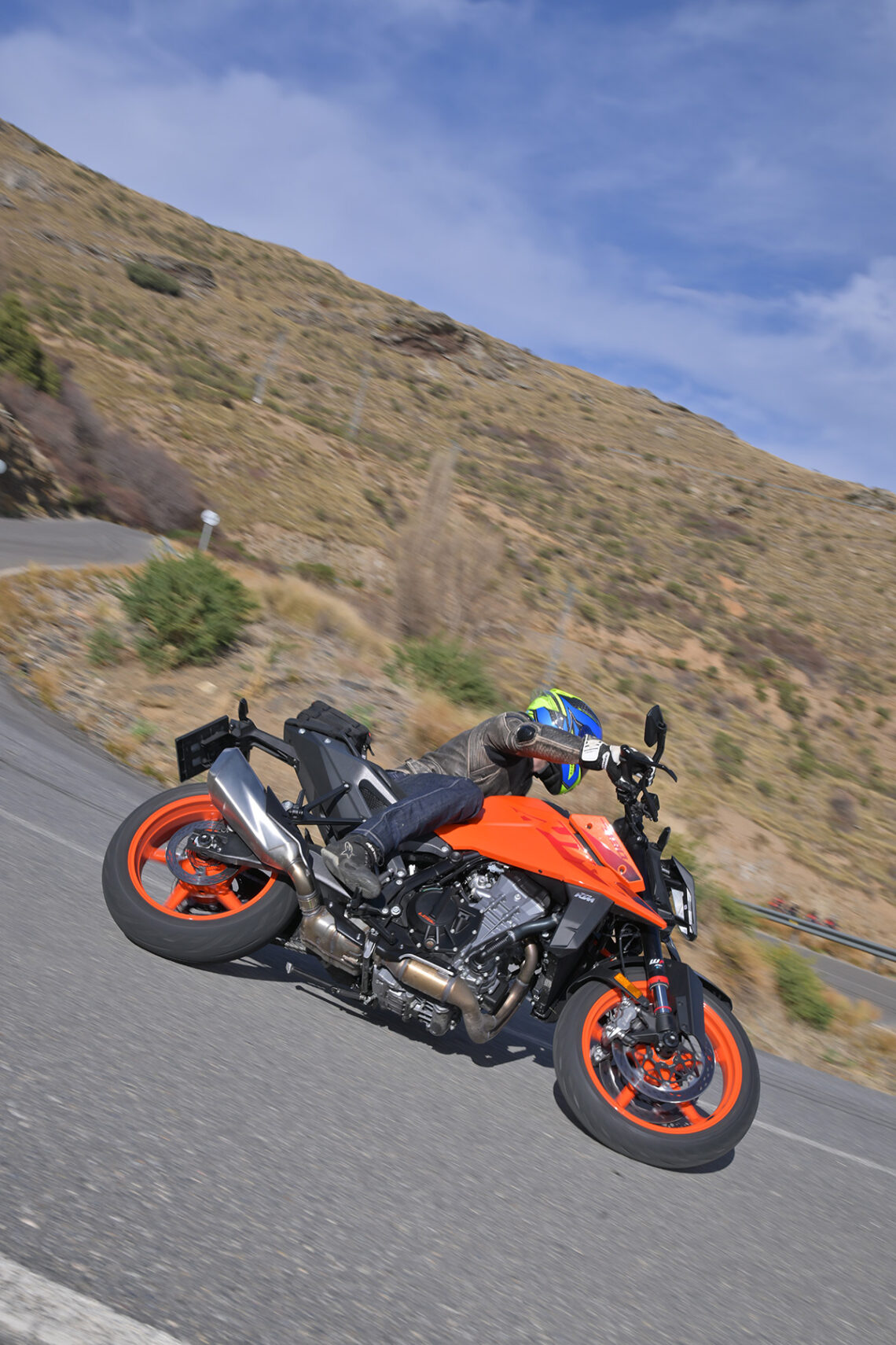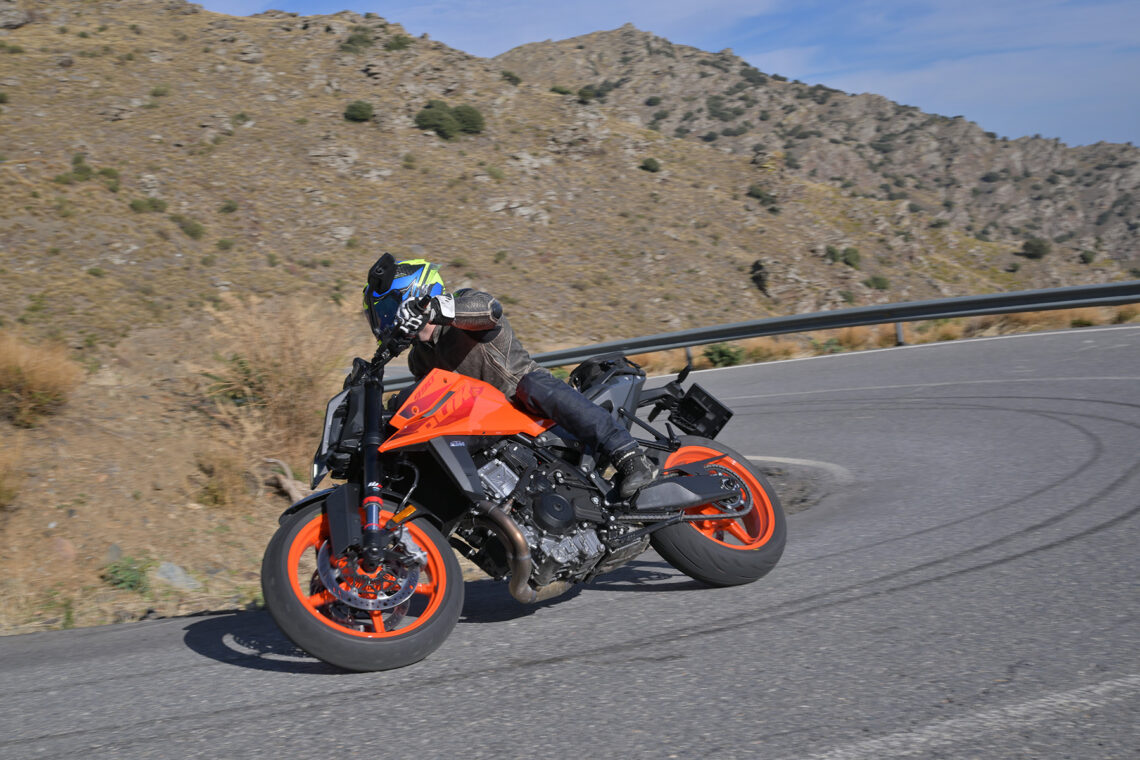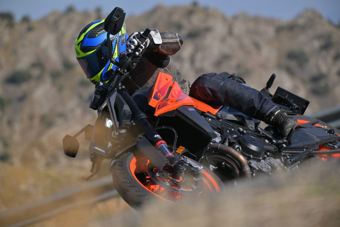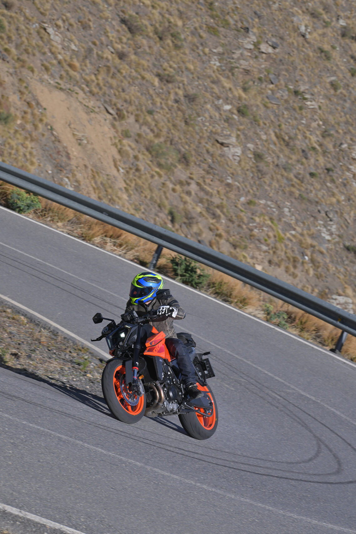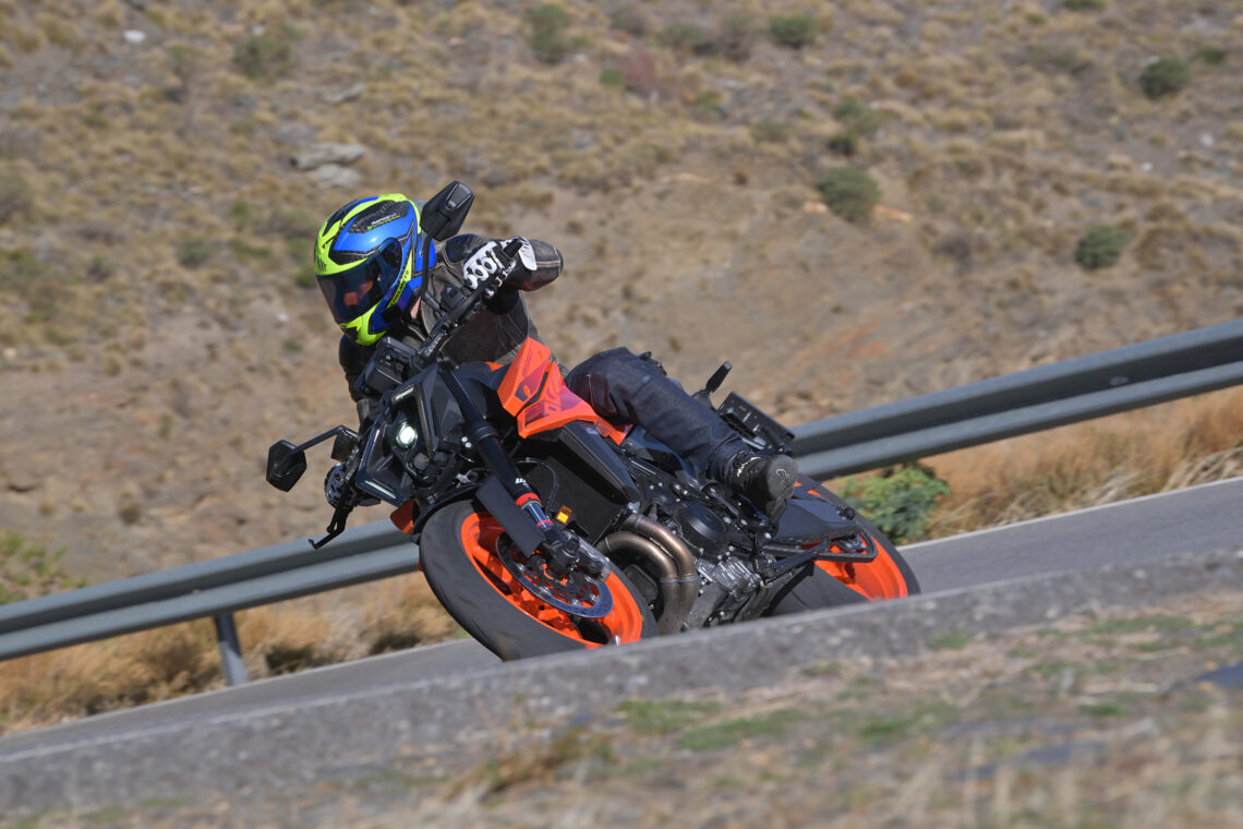 El pulso y la presencia de un "bi" de mil está ahí, y encima con el temperamento de KTM, aunque debo reconocer que ahora es bastante ajustable gracias a los modos de conducción, siendo el modo Sport el modo característico y genuino, y el modo Street una versión accesible, domada y agradecida de su entrega de potencia.