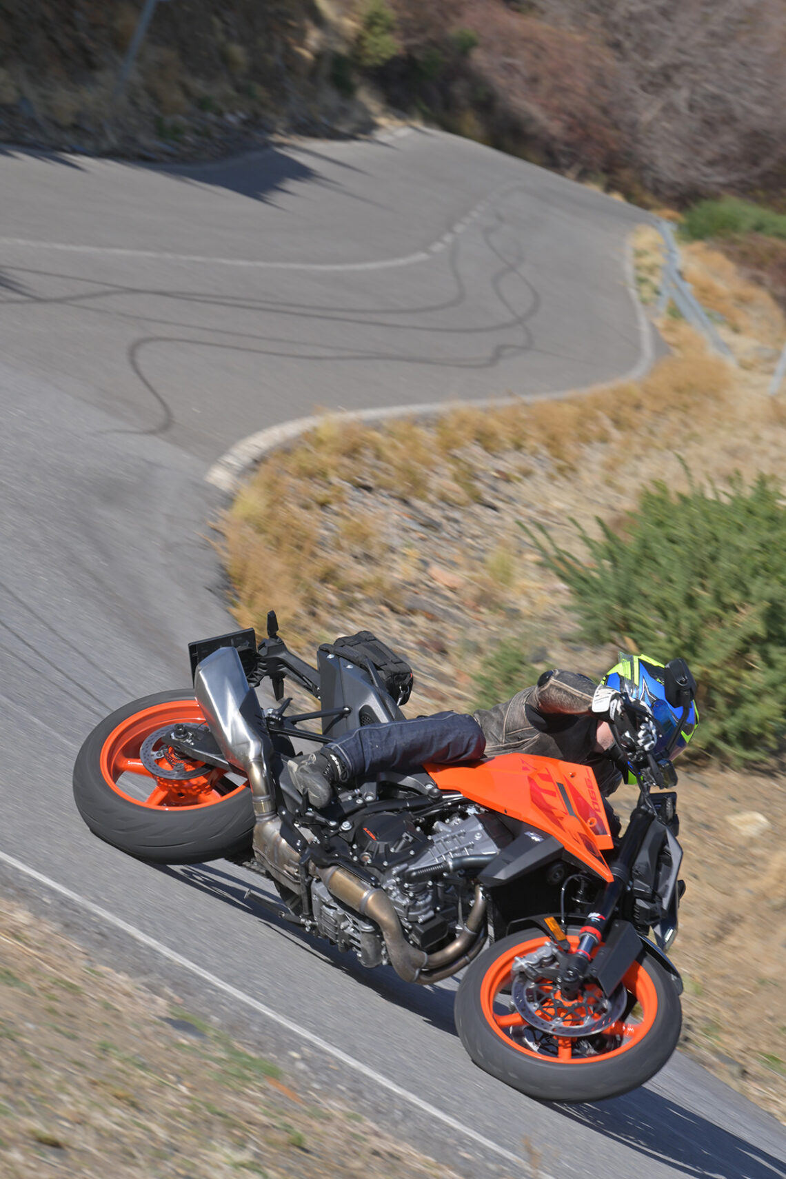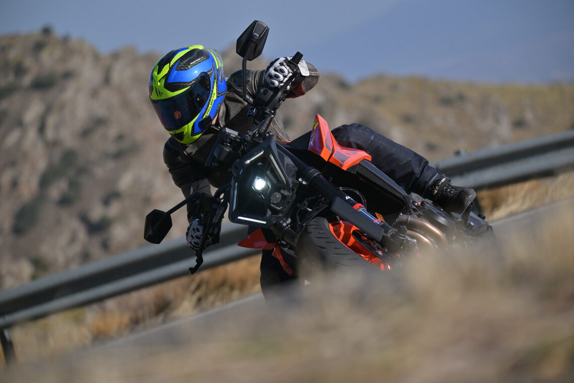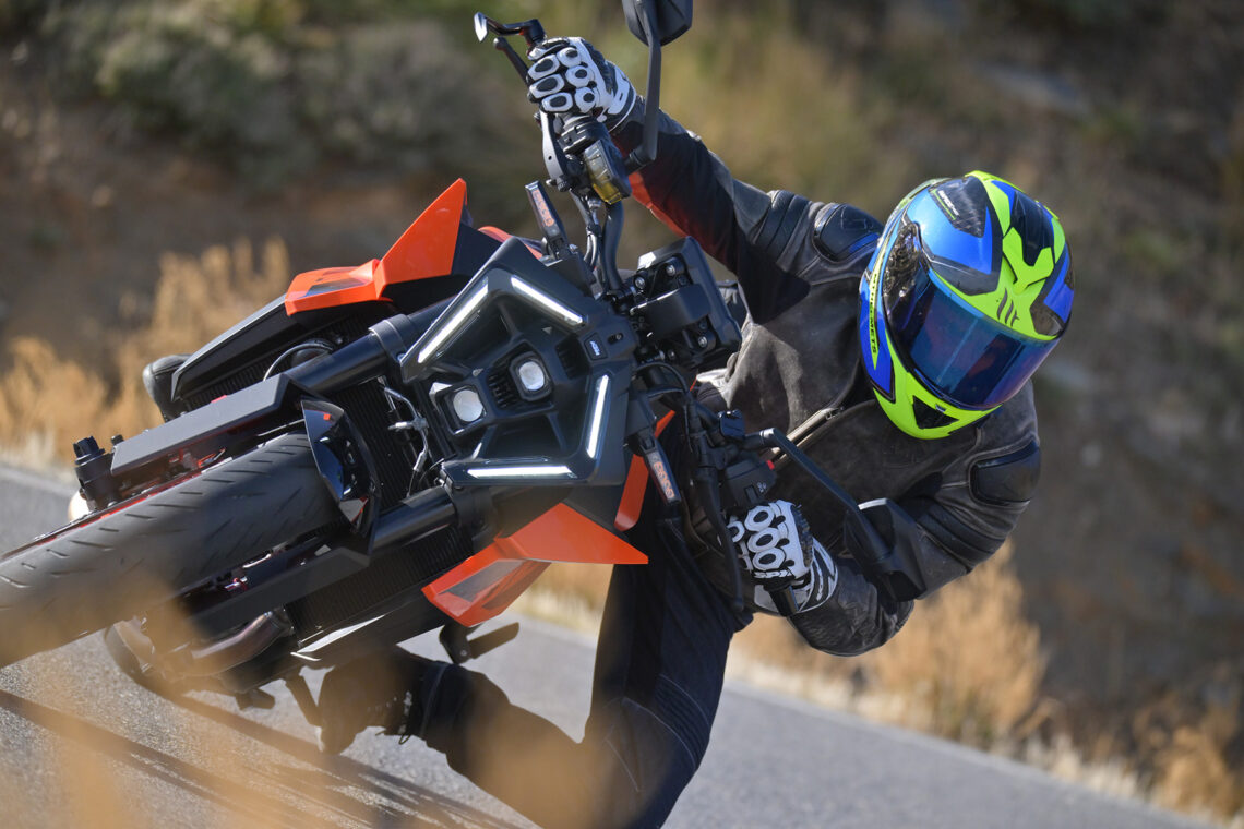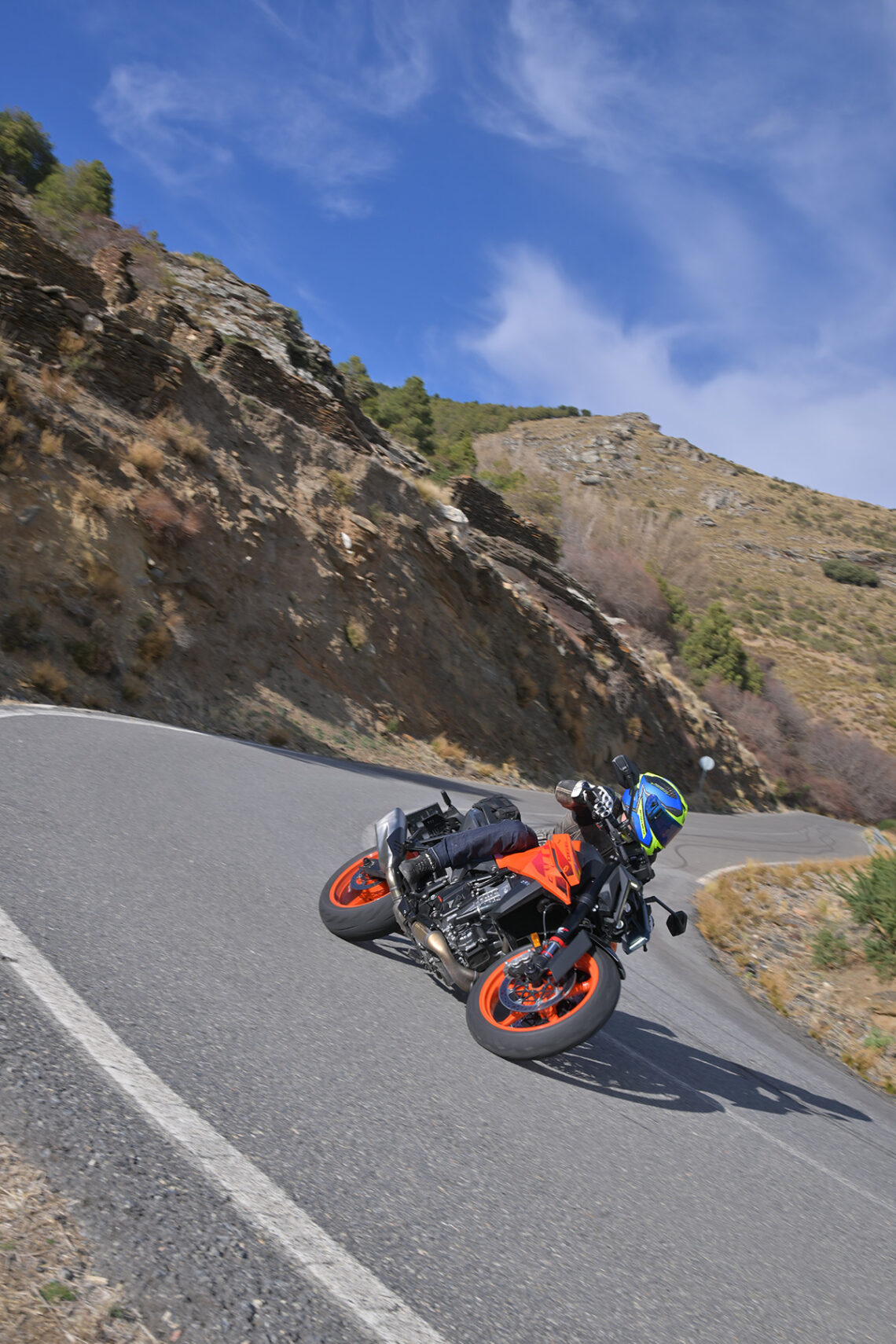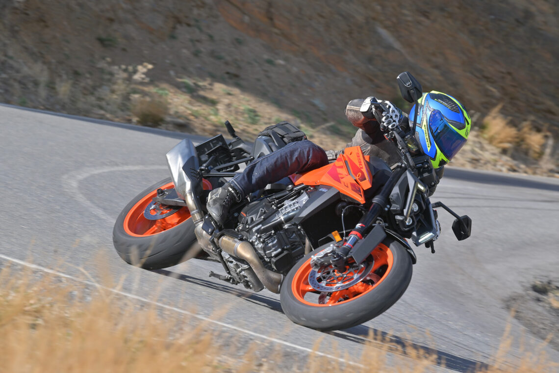 El pulso y la presencia de un "bi" de mil está ahí, y encima con el temperamento de KTM, aunque debo reconocer que ahora es bastante ajustable gracias a los modos de conducción, siendo el modo Sport el modo característico y genuino, y el modo Street una versión accesible, domada y agradecida de su entrega de potencia.