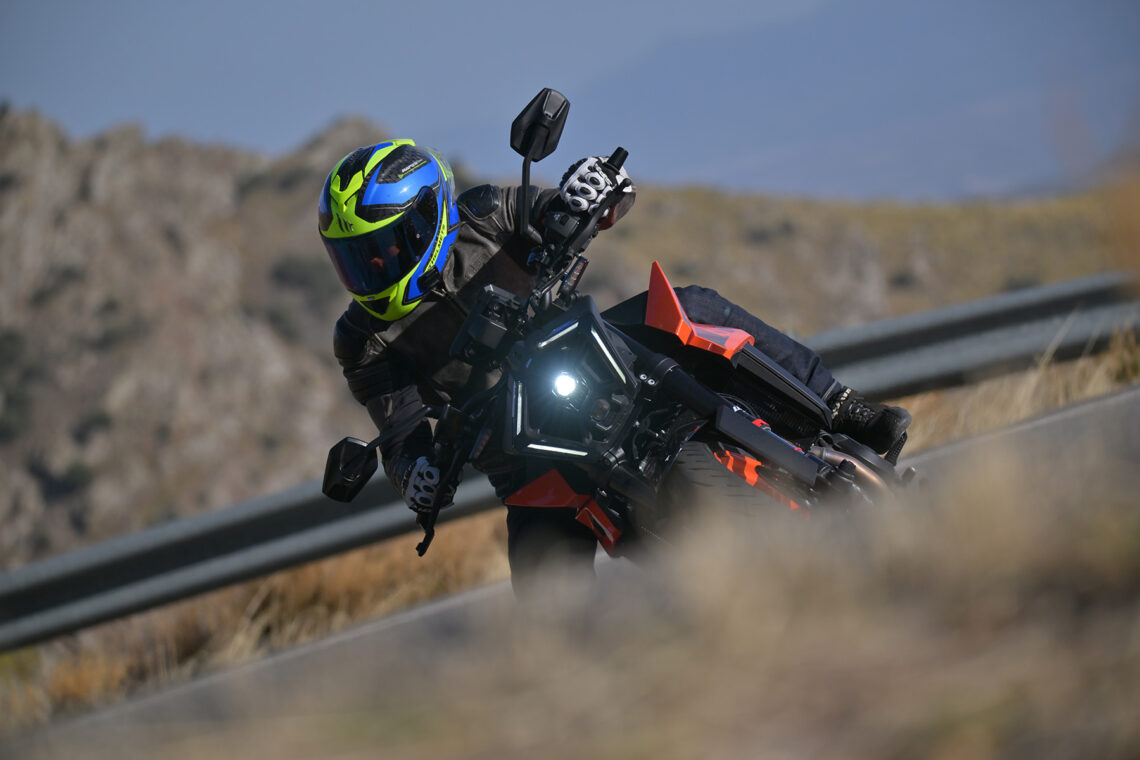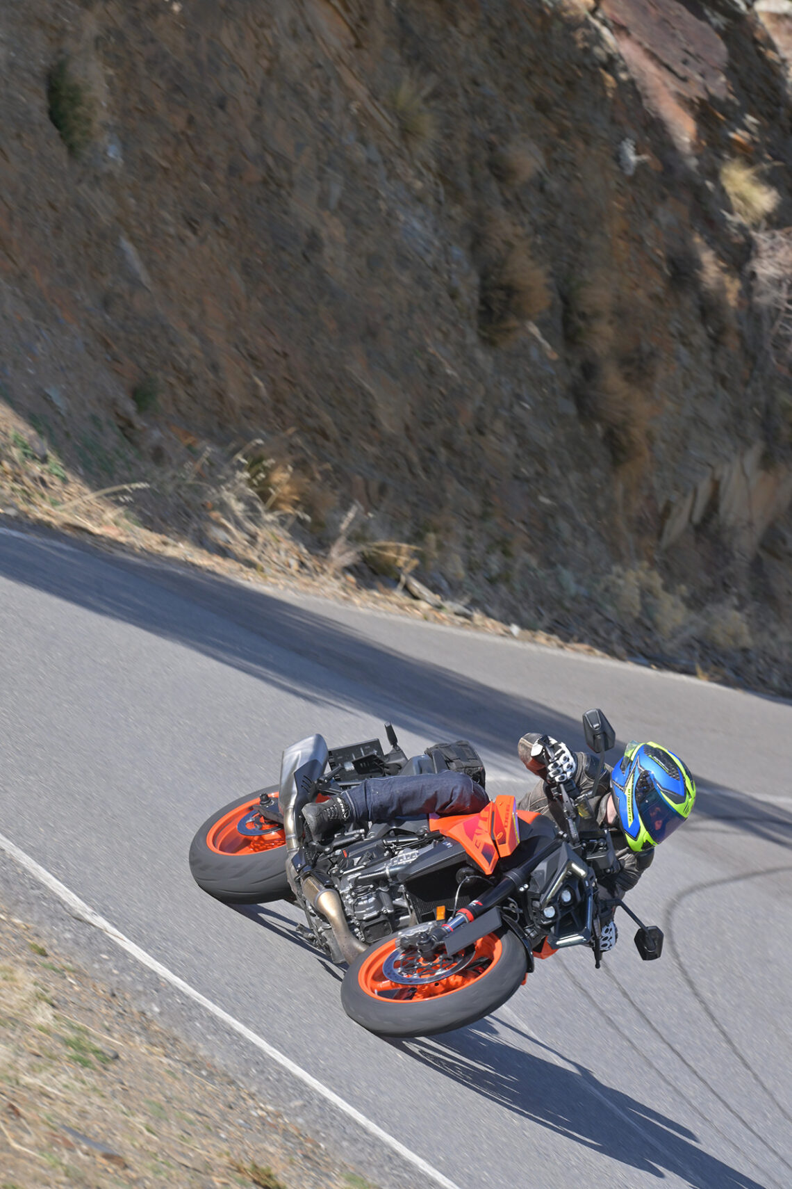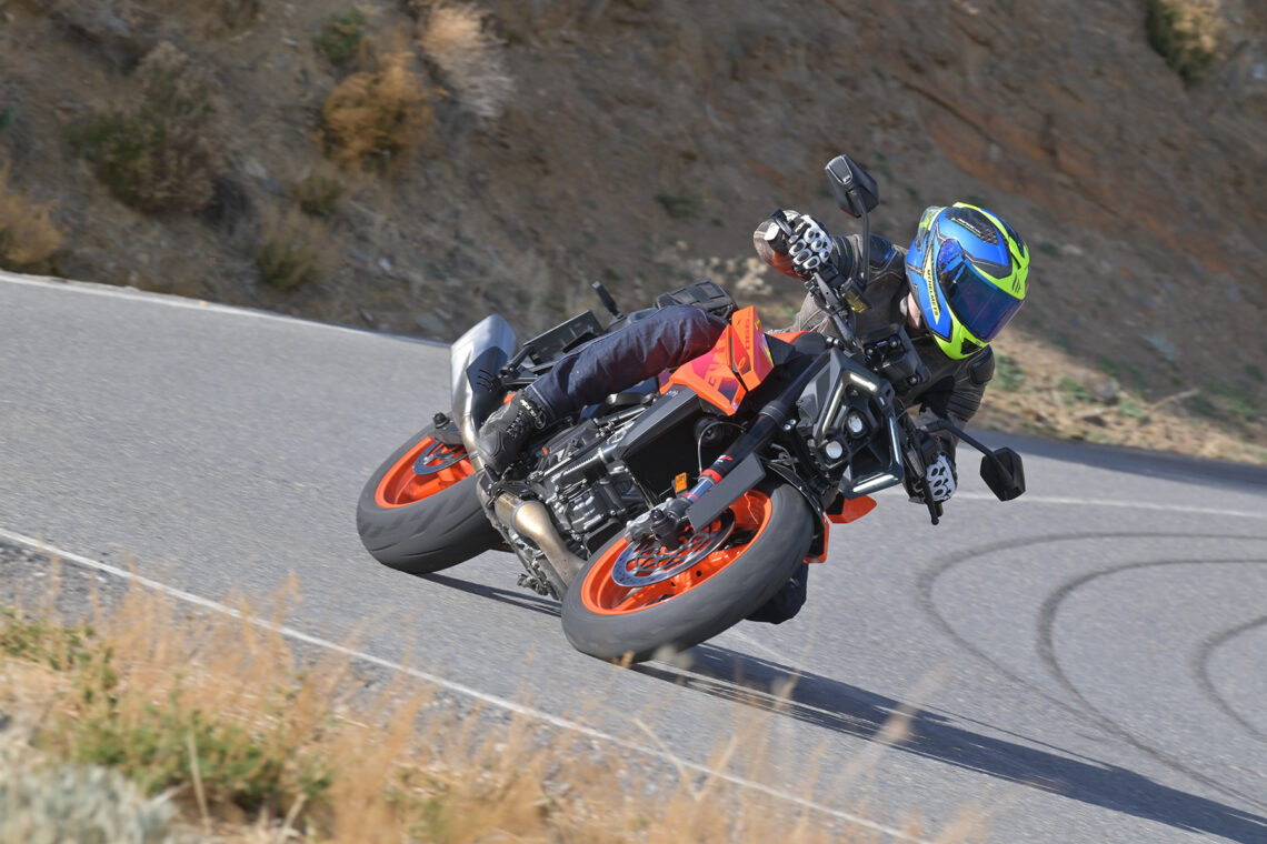 La frenada, como no podía ser de otra manera, ultra directa, tersa, y efectiva. Sin más, no tiene mayor historia, está muy cerca de la perfección si es que no flirtea con ella. Necesito mencionar algo en común con la 1390 que también probamos, y es la solidez y tenacidad de toda la parte delantera a la hora de frenar fuerte y buscar los límites. Ni un amago de descontrol o inestabilidad, así como la fea sensación de rechazo a tumbar que nos encontramos muchas veces al abusar del freno delantero en tramo de curvas.