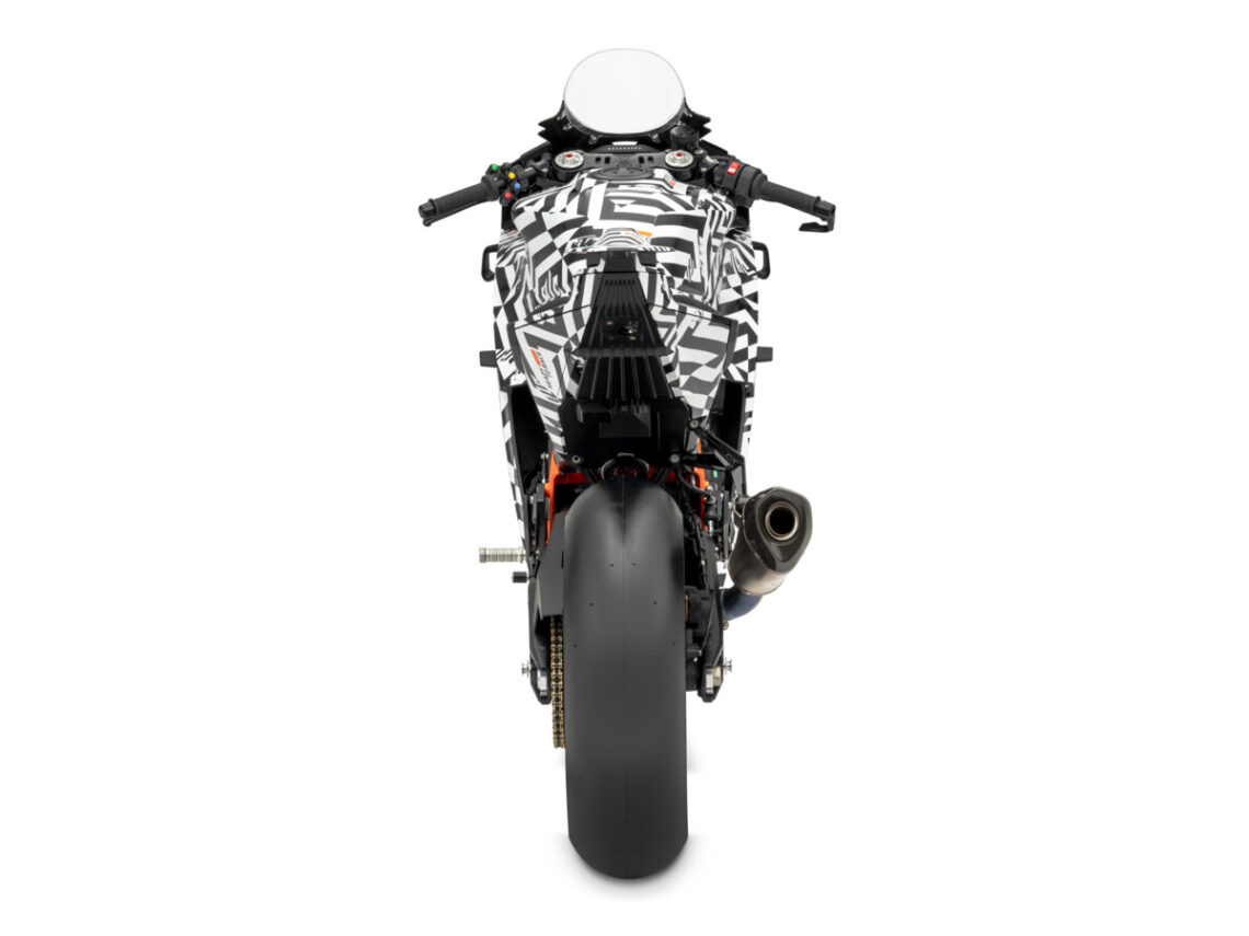 Aunque bajo un vestido camuflado y sin gráfica final, la KTM 990 RC R ya luce en las fotos oficiales de la marca mostrando el ADN propio de una superbike. Sus primeras apariciones vendrán de la mano de diversos wildcards en carreras europeas no puntuables de Superbikes, siendo la competición por tanto su portal de entrada al cliente final.
