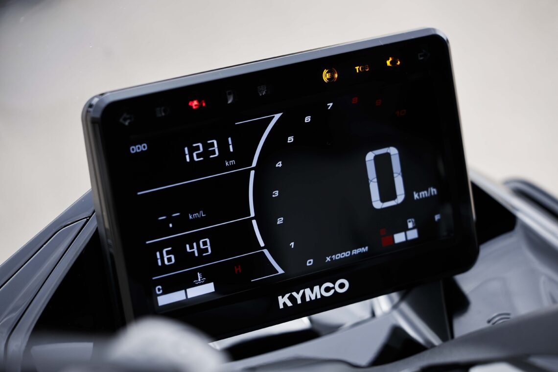 Un punto agridulce es la nueva pantalla TFT con un tamaño considerable y un formato voladizo llamativo. Su visibilidad es simplemente perfecta en cualquier condición de luminosidad donde ver la velocidad, tacómetro, totales y parciales, consumos o simplemente la hora. Gran desarrollo en este aspecto... Lo que no termino de comprender es la decisión de no incluir un sistema de conectividad o la lectura TPMS de presión de los neumáticos. Quizá es un aspecto que los más veteranos no terminan de valorar tanto (¿nos estamos haciendo mayores?) y que también encarecería su precio, pero quizá es un punto que se está convirtiendo en todo un estándar. Ojalá en próximas evoluciones, la marca consiga combinar una pantalla de este nivel de visibilidad con capacidades de conexión con el teléfono inteligente que eleven el nivel de experiencia del usuario. Sí que incluye un puerto USB en una guantera y otro tipo C en la parte central mientras que la llave ya es sin llave, lo que hace más cómodo su puesta en marcha y manipulación del asiento y la tapa de llenado del depósito.