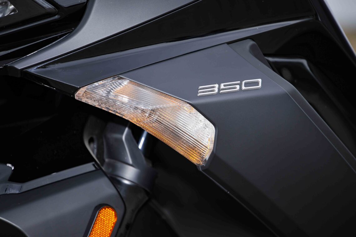 Como si hubiera sido ayer, el nuevo KYMCO Super Dink GT 350 toma el testigo del anterior modelo que dijo adiós con su homologación Euro 4. El tiempo no pasa en balde y la firma taiwanesa lo primero que ha hecho ha sido hacerle un buen lavado de cara. Las líneas siguen rezumando la elegancia que se le conocía a su anterior generación, aunque ahora se le han añadido detalles que modernizan su aspecto. Vemos aristas más angulosas a primera vista, pero con pequeños detalles que llaman mucho la atención como los huecos aerodinámicos que deja el carenado por encima de los faros, las entradas de aire traseras o los soportes ranurados de los retrovisores, lo que reflejan un aspecto más afilado. En el frontal el faro gana en personalidad e incluso dispone de unos huecos aerodinámicos muy novedosos.