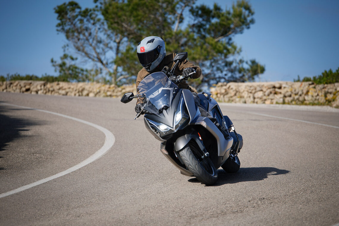 La comodidad de marcha es una de sus prioridades. Y lo consigue. Su motor es dócil y dosificable, con una suavidad excelsa. El control de tracción es imperceptible, ya sea por la suavidad del motor o porque su intervención está perfectamente calculada. Por cierto, esta ayuda es desconectable, quizá algo innecesario en un scooter de este nicho, pero siempre es bienvenida la posibilidad de adaptarlo a tus gustos. En los tramos urbanos más lentos, me llamó la atención el funcionamiento de su transmisión, ya que ofrece bastante retención haciendo casi innecesario el freno en ciertos momentos. Una vez superas los 30 km/h, ya 'se suelta' y deja correr un poco más el vehículo por su propia inercia y teniendo, eso sí, que controlar más con los frenos convencionales. Si pasamos a hablar de prestaciones, tiene una aceleración esperable en un 'tres y medio', con una zona media cuyo comportamiento realmente me gustó mucho por su entrega directa. Para los largos recorridos, alcanza las velocidades necesarias con brío y supera los 120 km/h con solvencia. Puedes apurar incluso más allá, aunque sin miedo a que te puedan quitar puntos del carnet en autovía...