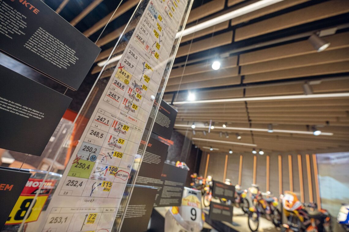 Como no podía esperar de otra manera, nada más entrar en las instalaciones del Motohall, te das cuenta del cuidado, la presentación y la limpieza de todos los aspectos. Tras recoger la entrada, te sumerges por un pasillo central en el que puedes ver diferentes evoluciones estéticas de depósitos, piezas de motor y todos los motores de la marca, sin duda, un plato fuerte para empezar que ya te deja abrumado por la cantidad de elementos y la calidad de conservación de todo lo expuesto en esta primera fase de 'Diseño, espíritu y tecnología' según se denomina esta parte. Y esto no ha hecho nada más que empezar. Avanzas entre paneles interactivos, donde por ejemplo puedes ver la evolución de las instalaciones que ha ido ampliando el grupo austriaco en Mattighofen y alrededores. No lo notamos, pero hemos ido ascendiendo por una rampa de manera casi imperceptible hacia un nivel superior, lo cual refleja por un lado la inteligencia del aprovechamiento del espacio y también la accesibilidad de la muestra para todos los públicos.
