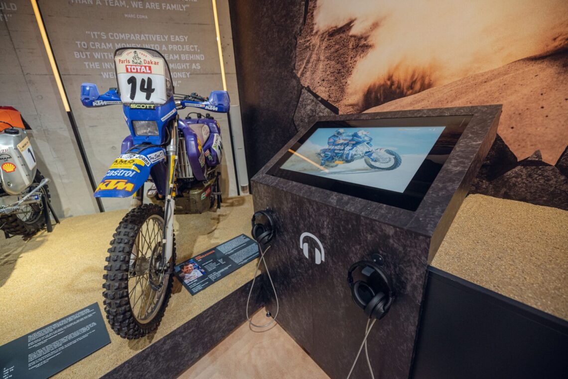 Desde este mes de mayo y con una duración prevista de 2 años, la dirección de este museo ha decidido habilitar una zona específica para las 'Leyendas del Dakar' del equipo oficial de KTM, un homenaje a los pilotos y al resto de personas que han formado parte de estas tres décadas llenas de momentos de gloria.