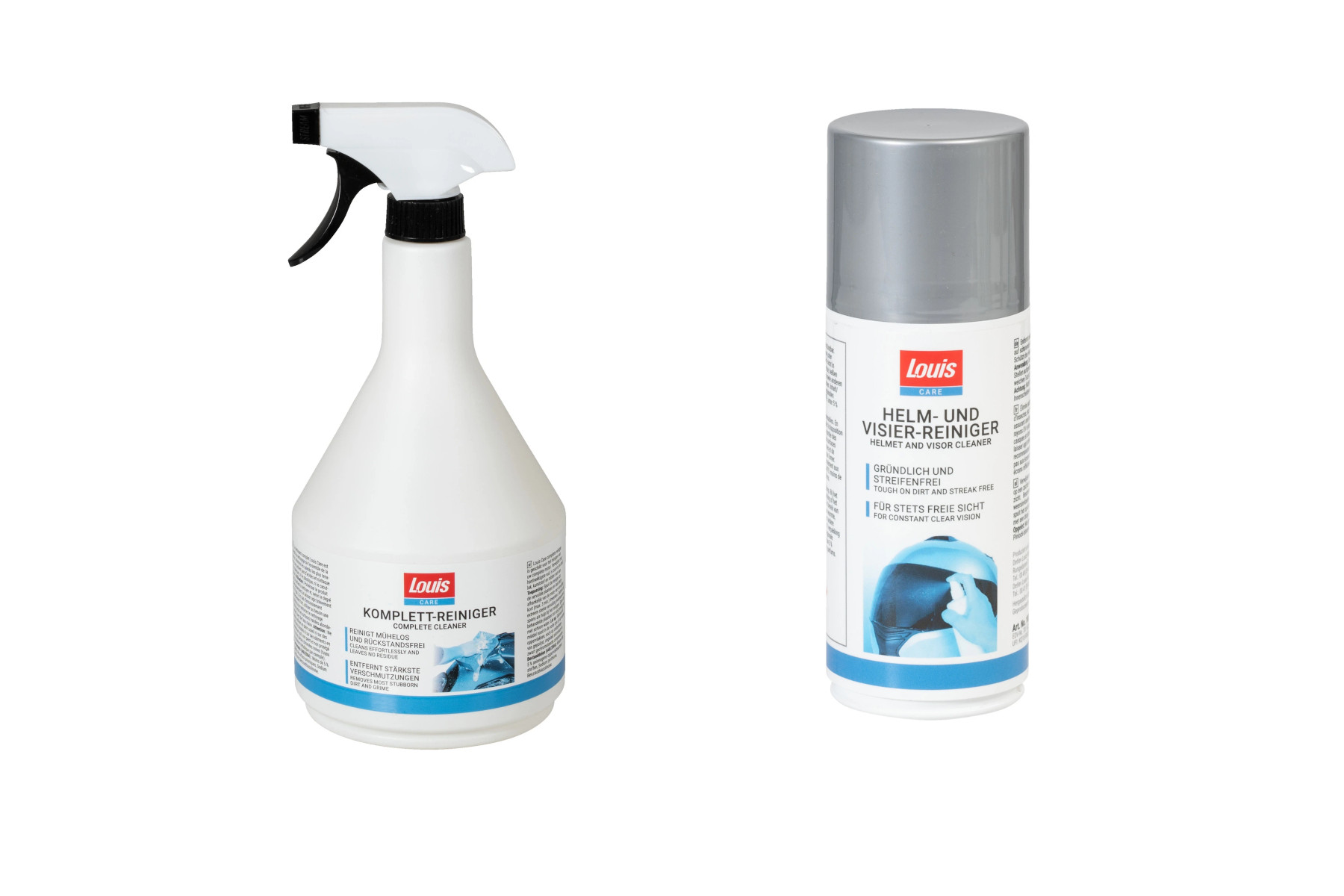 Louis Care se dedica a ofrecer productos de mantenimiento y cuidado para tu moto. Los usuarios podrán encontrar en esta marca productos útiles, necesarios y de alta calidad como el limpiador de cascos y viseras y el limpiador completo Louis Care con cabezal pulverizador. Estos productos garantizan que tu motocicleta se mantengan siempre limpias sin dañar la superficie.