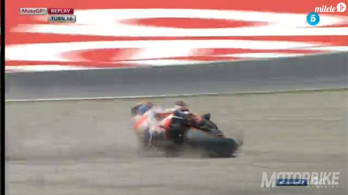 Marc Márquez no quería dar su brazo a torcer y salió a por todas desde la salida. Jorge toma la iniciativa y trataba de irse en solitario pero Marc sabía que tenía que darle caza antes de que fuese demasiado tarde y, cuando intentaba darle caza, ha sufrido una caída.