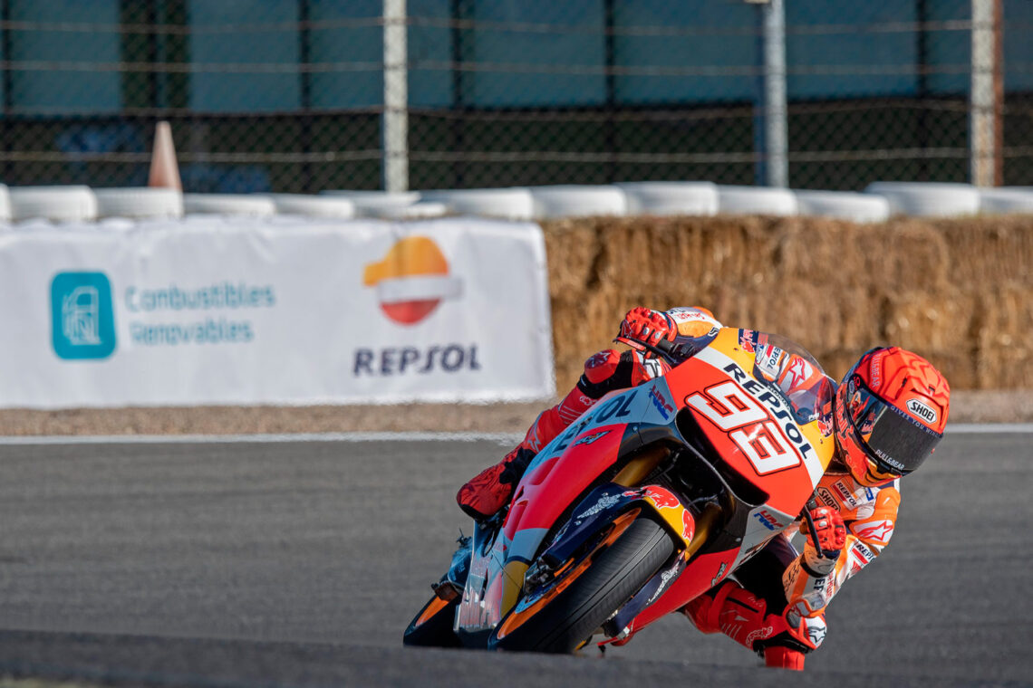 Repsol ha probado su biocombustible con Marc Márquez, que ha dado 12 vueltas con la Honda RC213V-S en el Circuito del Jarama. La prueba se ha realizado con vistas a 2024, año en el que MotoGP deberá utilizar, como mínimo, un 40% de combustible no fósil.