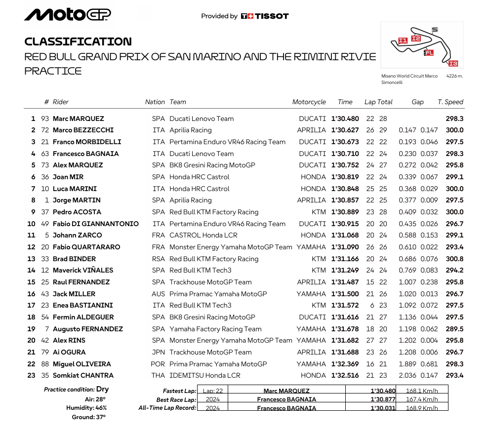 Marc Márquez lidera la Practice de MotoGP 💪🏻#SanMarinoGP 🇸🇲 #MotoGP 🏁 pic.twitter.com/1Qf0PdBG0L
