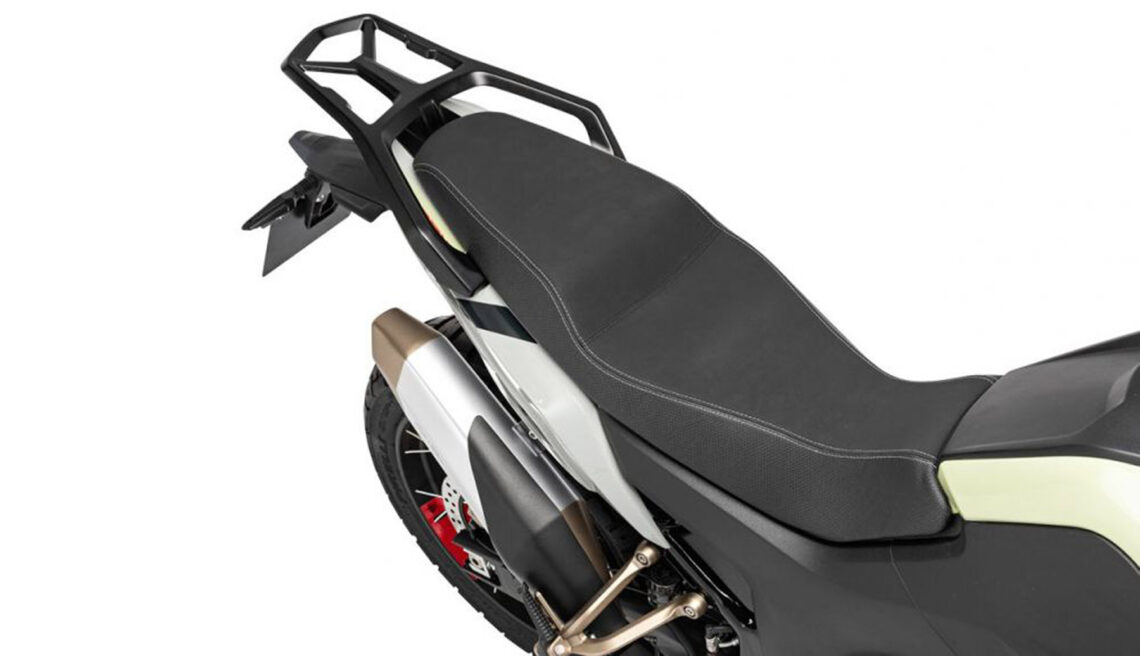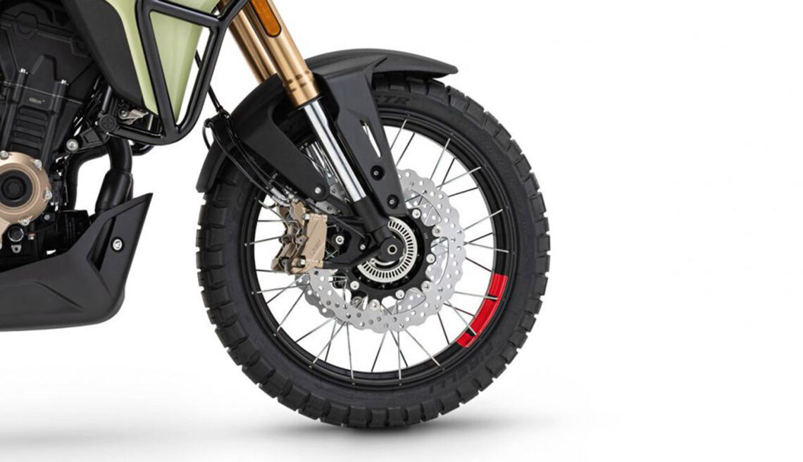 Todo se mueve sobre una rueda delantera de 19” y una trasera de 17, con llantas de radios sin cámara calzadas con neumáticos Pirelli Scorpion Rally STR. La distancia entre ejes es de 1.465, la altura del asiento de 830 mm, la distancia libre al suelo de 210 mm y el peso en vacío, sin los 16 litros de gasolina que caben en su depósito, es de 195 kilos.
