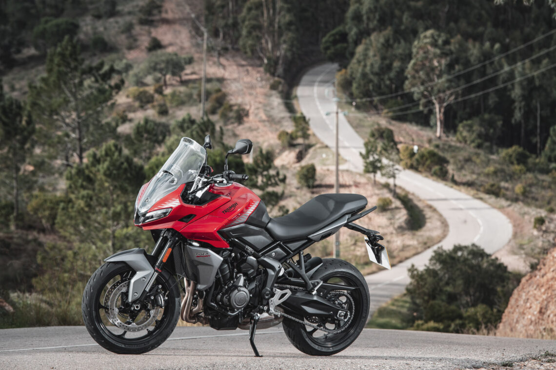 La Triumph Tiger Sport 660 debutó en el catálogo de la firma británica en 2022, compartiendo motorización tricilíndrica en línea 12 válvulas de 660 cc de 81 CV a 10.350 rpm (la más potente de su categoría) y 64 Nm a 6.250 rpm con la Trident 660, un bloque derivado de la antigua Triumph Street Triple S, pero muy modificado internamente.