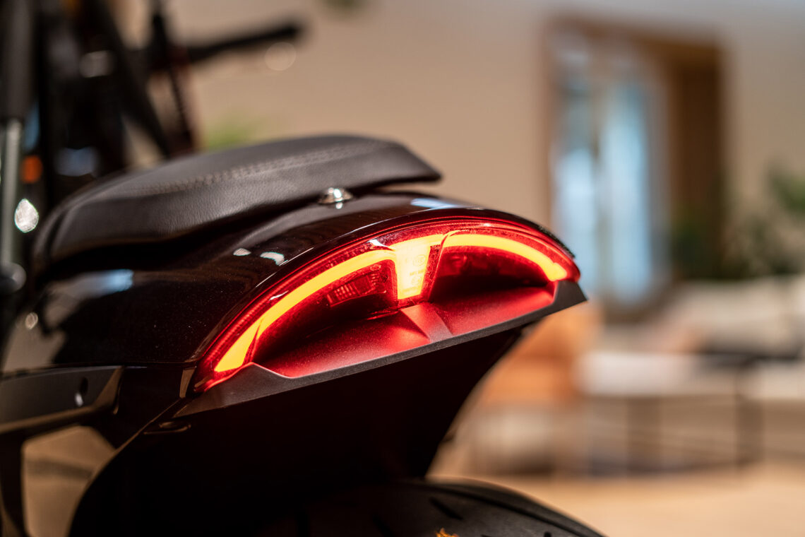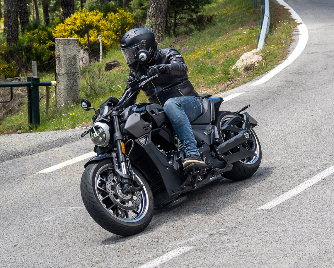 La agilidad del conjunto es muy buena, ya que tiene un centro de gravedad muy bajo y poco recorrido de suspensión (13.7 cm del. y 4.1 cm det.), lo que pega aún más esta C1002V al asfalto. Lógicamente, con un amortiguador tan corto la absorción de baches en el tren trasero se ve limitada y se le puede llegar a acumular el trabajo sobre firme irregular/roto por lo que tu espalda agradecerá rodar por carreteras con buen asfalto.