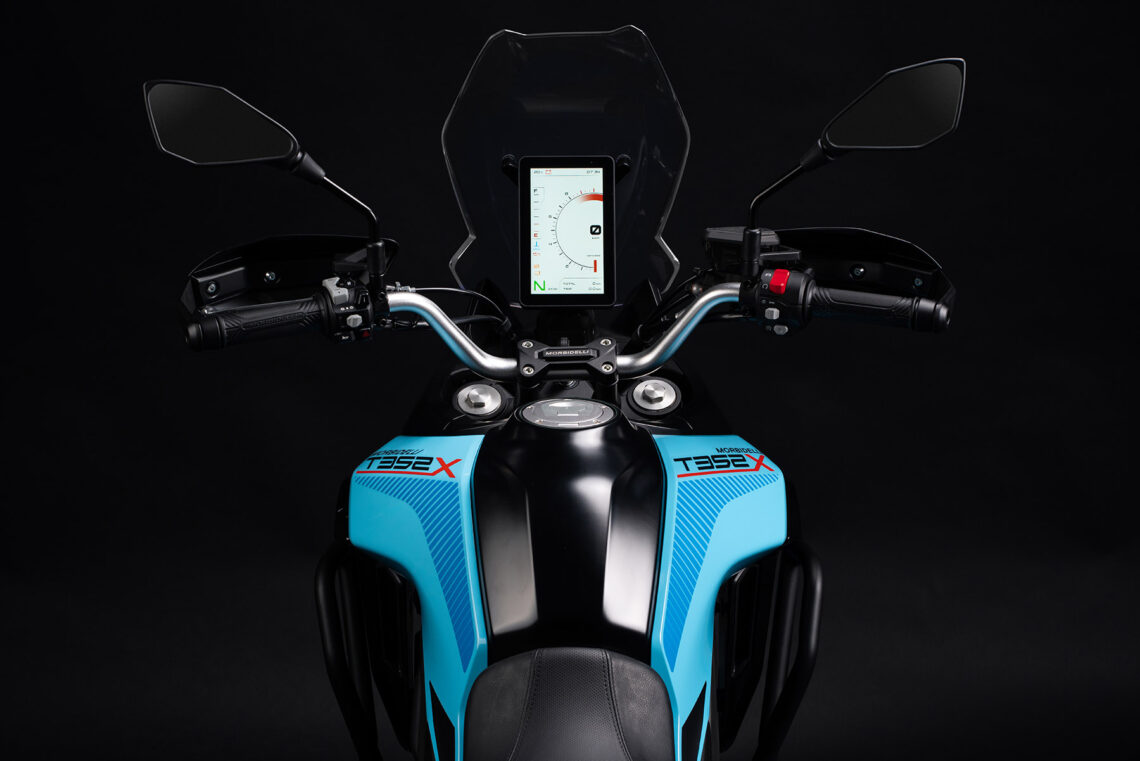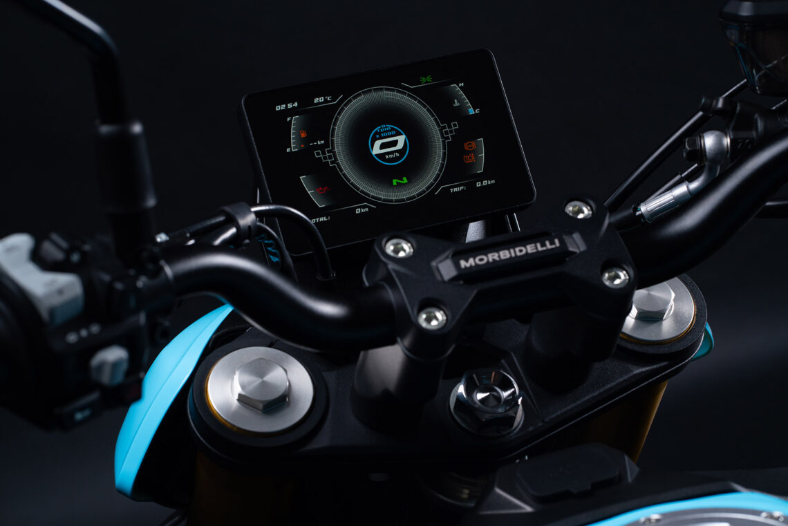 Monta una pantalla TFT de 7" con conectividad Morbidelli Connect y posibilidades de mirroring de tu móvil en la pantalla de la moto, USB y mandos retroiluminados.