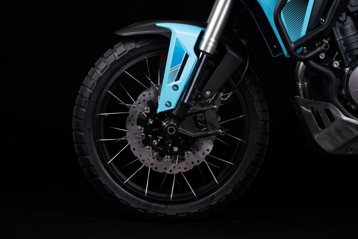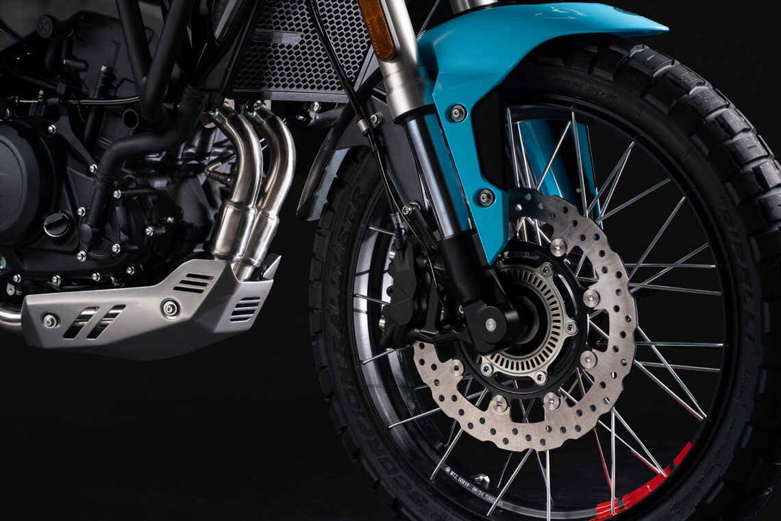 Su lado polivalente lo vemos en la parte ciclo, con unas suspensiones en las que destaca la horquilla invertida de 43 mm con un recorrido de 180 mm mientras que atrás confía en un amortiguador Pro-Link con 69 mm de recorrido. La frenada la confía en dos discos de 300 mm y un disco trasero de 240 mm con ABS Bosch desconectable de la rueda trasera para mejorar el pilotaje off-road. Para darle un plus de polivalencia, monta rueda delantera de 19" con llantas de radios.