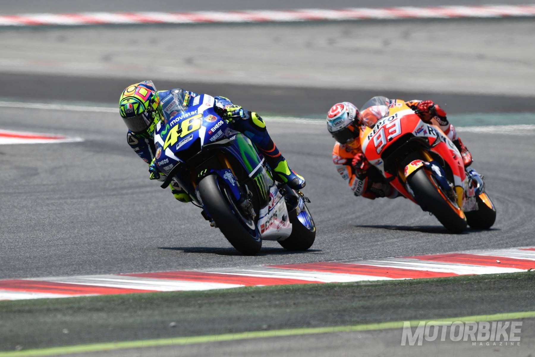 Rossi fue de los pilotos que mejor se adaptó al nuevo trazado. En la sesión que serviría de toma de contacto con la nueva variante -FP3-, el italiano finalizó con el cuarto mejor registro, rozando el 1'44, al que sí llegaron Viñales, Márquez y Pedrosa. Más tarde, en la segunda tanda del día, las cosas no le fueron tan bien. Terminó séptimo, con una última tanda larga de siete vueltas en las que su ritmo se establecía en el 1'46 bajo -solo en un giro bajó al 1'45.992-. Mientras tanto, Márquez enlazó vueltas en 1'45 medio hasta en seis ocasiones. En ese momento, Rossi estaba lejos de optar a la victoria. En la Q2, Valentino marcaría la quinta mejor vuelta y no terminaría de descartarse del todo.