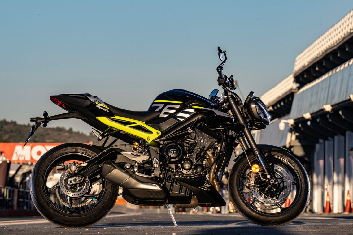 Entre todos ellos, la Triumph Speed Triple 1200 RR ejemplifica la máxima evolución de este concepto: 1.160 cc, 12 válvulas, DOHC, 180 CV a 10.750 rpm, 125 Nm a 9.000 rpm y 199 kg en orden de marcha. Si hablamos de cifras puras, la Rocket 3 Storm R es la reina del catálogo, con su particular tricilíndrico longitudinal de 2.458 cc, 182 CV a 7.000 rpm y 225 Nm a 4.000 rpm para 317 kg (OM).