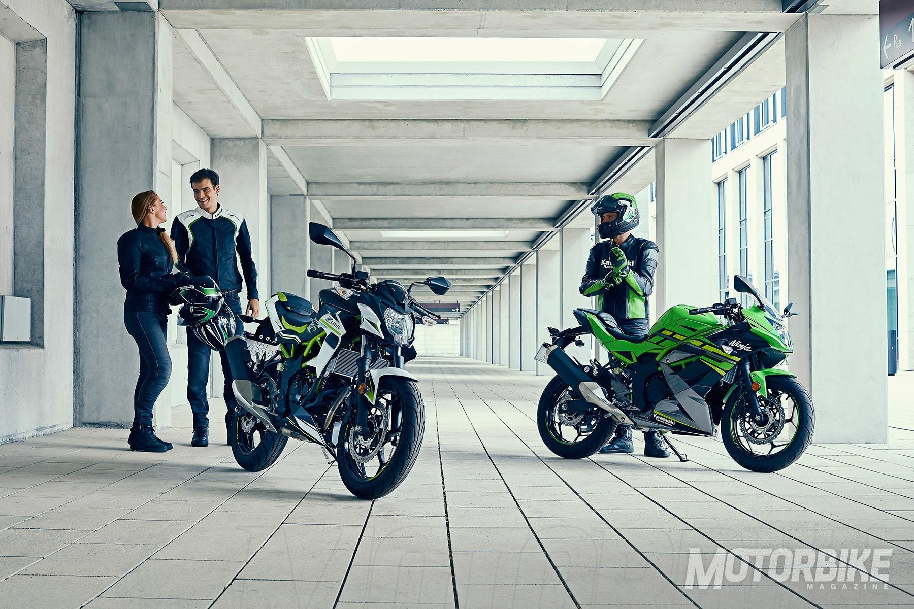 Kawasaki ha presentado en INTERMOT 2018 las nuevas Kawasaki Ninja 125 y Z125, las dos puntas de lanza de la marca de Akashi en la cilindrada pequeña. La Kawasaki Ninja 125 es la nueva deportiva 125 con la que los jóvenes pueden iniciarse en la familia Ninja y de ese modo pertenecer a una familia con un legado tan representativo. Por su parte, la Kawasaki Z125 está fabricada sobre la misma base, pero con una proyección más versátil y más urbana, con una posición menos radical. Ambas cuentan con el mismo propulsor, un monocilíndrico de 125 cc que desarrolla los 15 cv máximos permitidos por la normativa del carnet A1., por lo que también se pueden conducir con el carnet de coche (y 3 años de antigüedad). El chasis es el mismo tanto para la Kawasaki Ninja 125 como para la Z125, un multitubular de acero, con unas horquillas telescópicas de 37 mm de diámetro y una suspensión trasera Uni-Track.