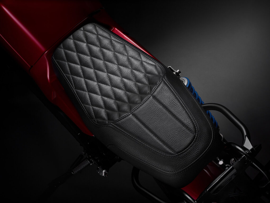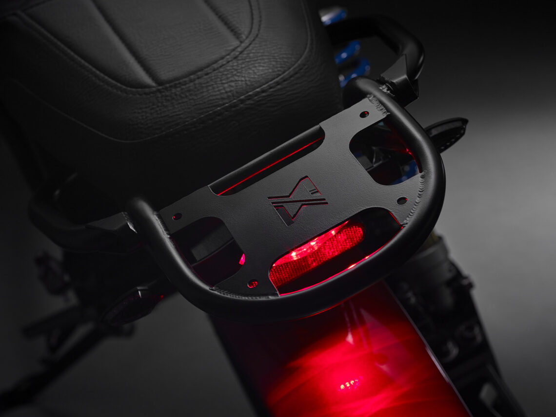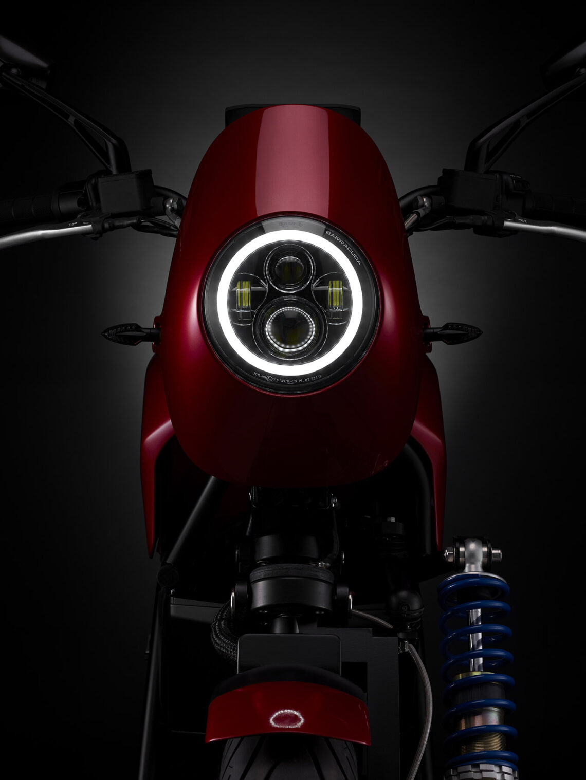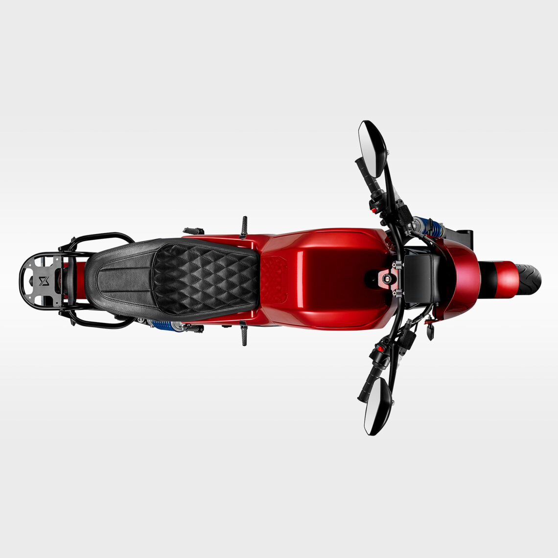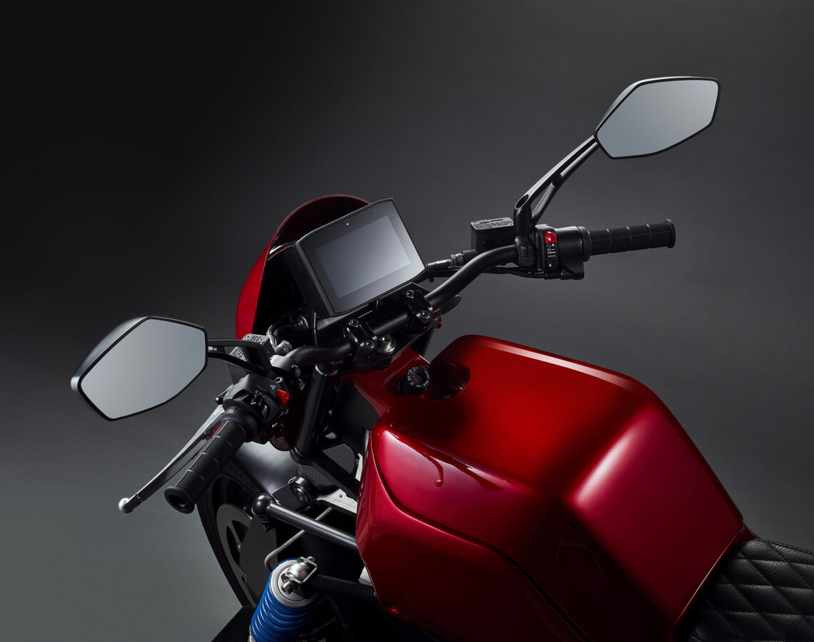 Eso sí, no hace falta que la marca nos dé muchos más detalles para ver que estamos ante una moto eléctrica 125 diferente a todas las demás. Dentro de lo que cabe, el bastidor tubular de acero se podría considerar algo dentro de lo normal, pero lo que llama la atención es que opta por una dirección alternativa basada en un basculante monobrazo, al igual que lo hace con la rueda trasera. Siendo mantenida la rueda delantera por la izquierda y la trasera por la derecha. Los neumáticos, por su parte, son de medidas 120/70-17” delante y 130/70-17” detrás.