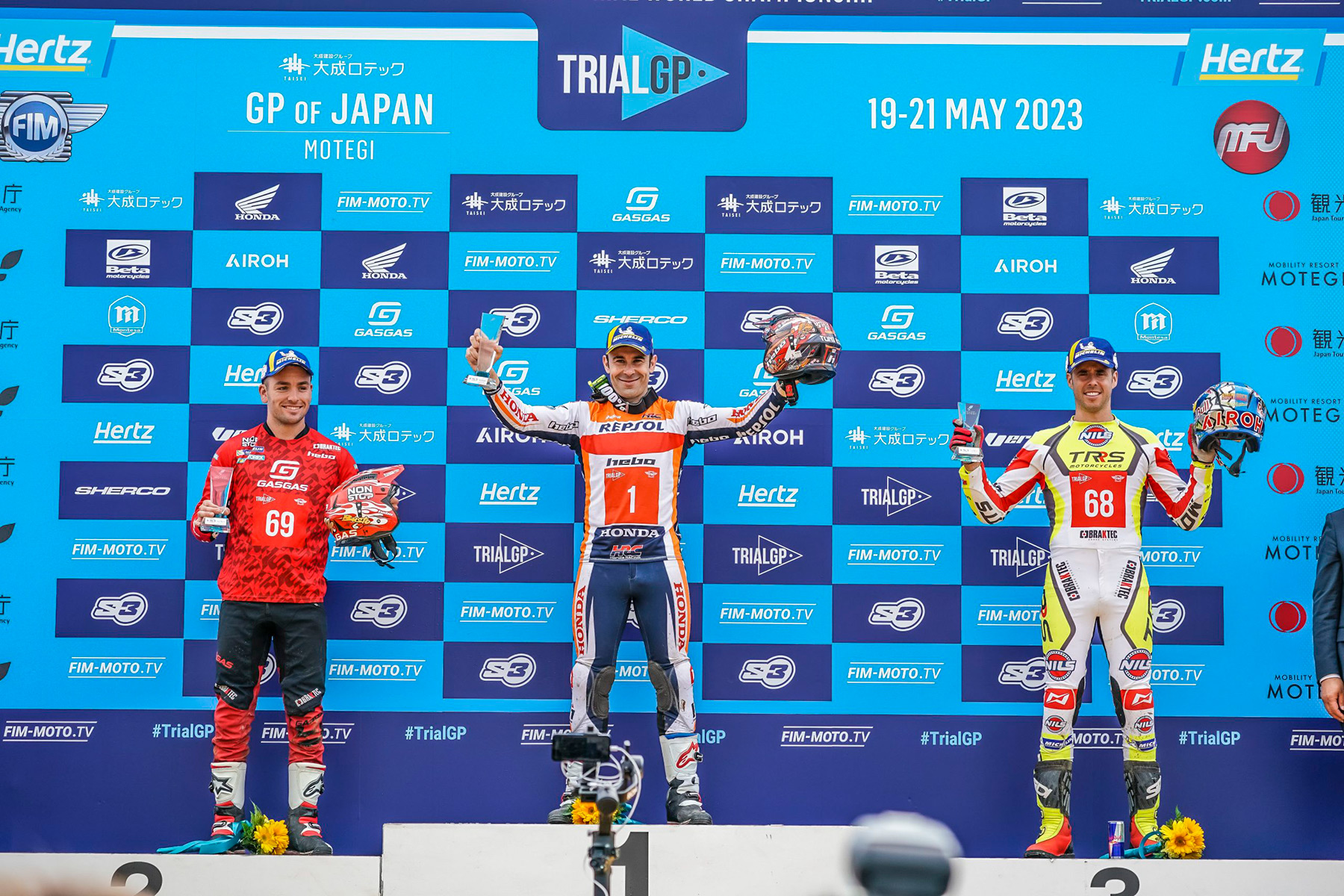 Toni Bou, por su parte, destacaba la importancia de la victoria del sábado en casa de Honda y se lamentaba de los errores del domingo: «Esta carrera siempre es especial porque es la 'casa' de Honda y ganar en Japón es muy importante para nosotros. Ayer las zonas estaban difíciles, pero en la segunda vuelta se secaron y el nivel de dificultad bajó. Súper contento con el resultado final. Hoy domingo ha sido un día complicado para nosotros. Hemos tenido dos cincos por parar, he cometido muchos errores. Al final de la segunda vuelta hemos tenido la oportunidad de luchar por la victoria y hemos quedado empatados, pero por el tiempo hemos hecho segundos. En la próxima carrera toca estar muy concentrados porque el campeonato está muy ajustado, no cometer errores y sacar nuestra mejor versión».
